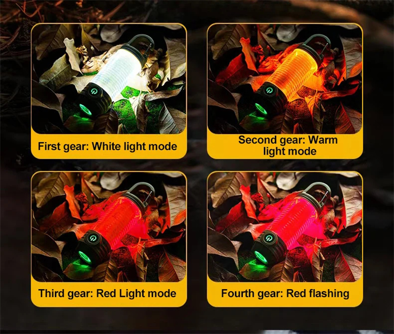 2.Three Lighting Colors: Choose from three different lighting colors—white, warm, and red—to suit your needs and preferences. This feature enhances visibility and creates the perfect ambiance for any outdoor adventure.