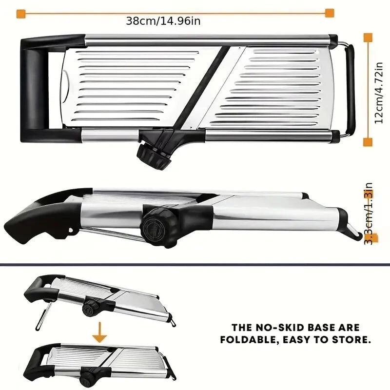 - High-Quality, Food-Safe Materials: Constructed from food-grade stainless steel and BPA-free ABS plastic, this mandoline slicer guarantees both safety and robustness. The sharp stainless steel blade remains dependable through repeated use, enabling you to efficiently handle a variety of ingredients and significantly cut down on prep time.