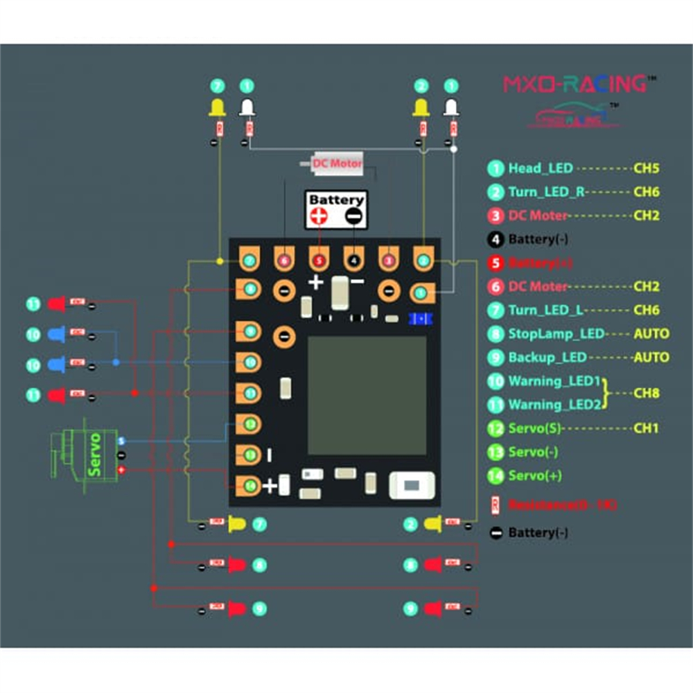 MXO-RACING RXC87E 8CH Super Micro Surface RX Receiver Built-in B-ESC Support FLYSKY AFHDS-2A FUTABA SFHSS FRSKY D8/D16 For 1/64~1/87 Micro RC Racing Car