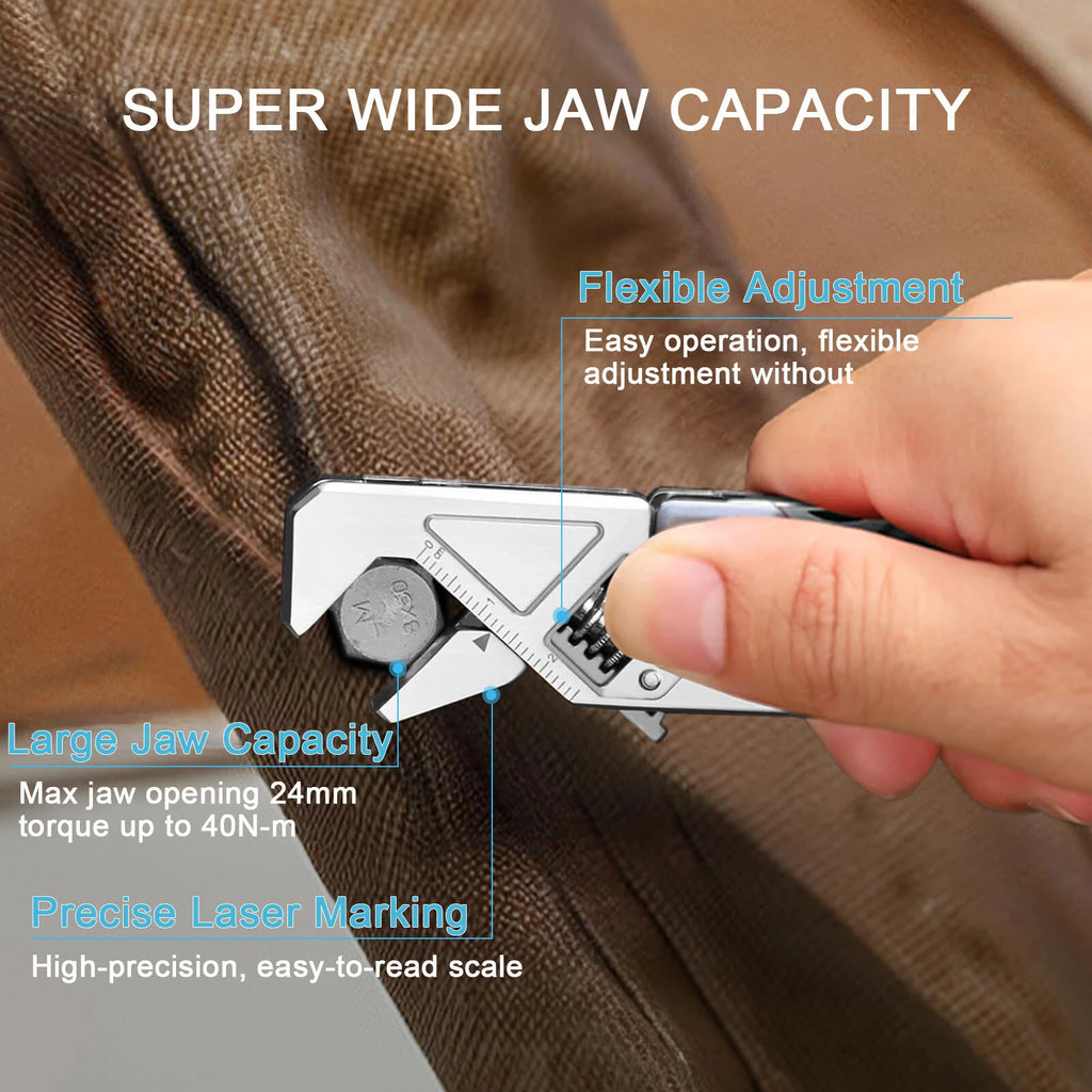 2. [WIDE JAW OPENING ADJUSTABLE WRENCH MULTITOOL]: Wide opening jaws 0.98inch(25mm) of this wrench are designed for added versatility, fits a wide range of fastener sizes, supports larger nuts and bolts. Precision-machined slide jaw and worm gear allow for exact fastener fit and smooth adjustment.