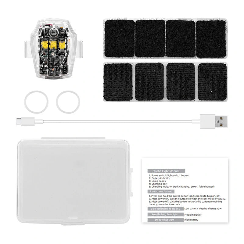 - High-brightness flashing, high light transmittance, and the visible range in clear weather can reach 6KM when flying at night (due to the influence of the weather environment, the actual visible distance of the strobe light in the night sky may be different, the data is for reference only);