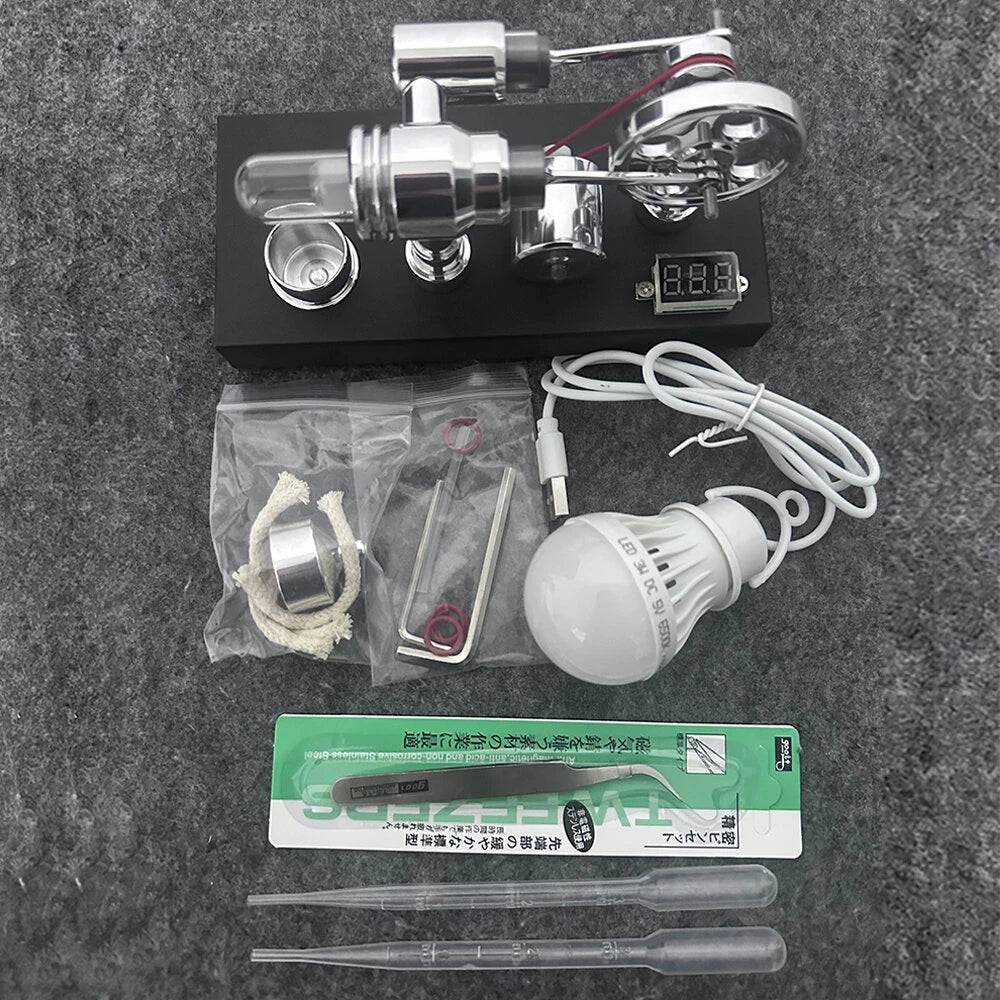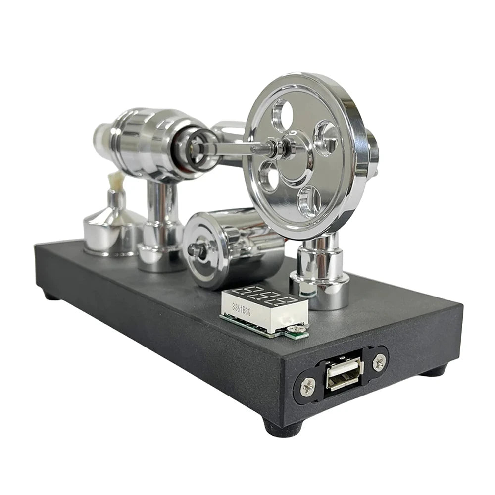 Other Configurations:The connecting rod of the Stirling engine is also precision machined by a machining center, and the voltmeter and USB are located inside the base, which looks very textured as a whole.