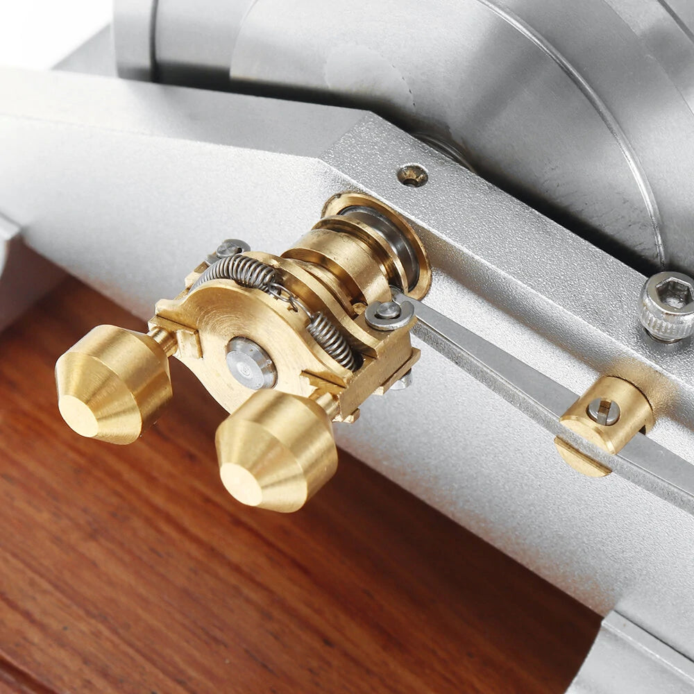 This is a horizontal single-cylinder 4-Stroke Hit and Miss Gas Engine Model with a unique and exquisite shape, stable and reliable structural design, and a wooden base for easy placement and operation.It is machined from brass, stainless steel and aluminum alloy. A brass sleeve is installed on the crankshaft support with a lubrication hole to lubricate the main shaft and reduce friction. Likewise, a lubricant cup is added to the cylinder!We have developed a new igniter specifically for this tiny engine that uses a 1.5V battery! It uses gasoline as fuel and can run for about 15 minutes per tank of fuel.Start working clockwise (facing the starting shaft) and when you start this engine you can hear it moving, maybe that's one of the things that fascinates us.