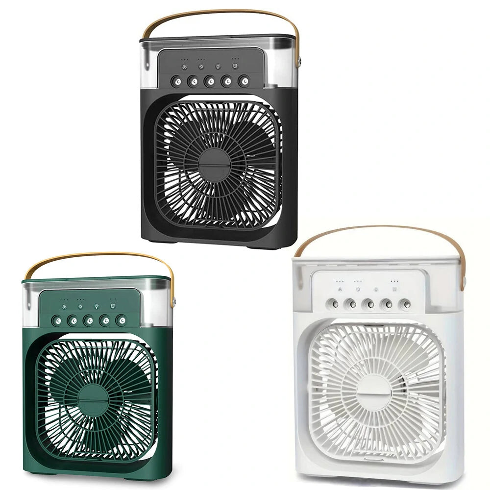 Features:[ All Year Round 4-IN-1 Portable Air Conditioners ] - The air cooler features a multifunctional design, which can be used as fan, portable air conditioner, humidifier, and night light. We have improved this personal air conditioner to make it smaller and more powerful. Cooling you in hot summer and humidifying the air in dry autumn and winter, it is also used for aromatherapy on weekdays.[ Efficient Cooling & Automatic Timing ] - 3 wind speeds (high, medium, low) can be adjusted, manually up-down to adjust the blowing direction within 360° to meet your different needs. Depending on the 3 spray speeds (1/3/5 humidifier misting hole) you choose, a full 600ml tank of water can continuously keep spraying for 2.5-12 hours. In addition, you can choose the most suitable auto timings (1/2/3h) to enjoy your leisure time, sleeping, or working time.[ Energy Saving & Low Noise ] - The desktop air cooler has 7 soft LED colors and 1 fade choice in all to create a romantic atmosphere! Misting air fan can work powerfully at a low noise level, letting you enjoy a comfortable sleep all night at a suitable temperature. Besides, the portable air fan operates at low energy consumption, much cheaper than running a freon air conditioner. So you should not expect the same results as an air conditioner. Please put it beside you not over than 3ft-4ft.[ Unique Design & Easy To Use ] - We have improved this air conditioner portable to make it simple to set up and use. Simply connect the USB cable to the devices that support the USB port. The removable design helps you more easily clean your water tank and add water& ice cube to the water container. Portable handle, you can easily carry it out, very suitable for indoors and outdoors.[ Enjoy Cooling Summer Time Anywhere ] - The size of this USB mini air conditioner is 10.75*8.5*4 inches and weighs only 1.88 pounds, easy to carry. The small air conditioner can be used in combination with adapters, mobile power supplies, computers, car chargers, etc. Use it in your home or work office, dorm room, or travel wherever you need it.Note: The output current of power supply equipment shall be greater than or equal to 2A, otherwise, the product will not work normally due to insufficient power supply.Specifications:Function: Fan / Humidify / Air Cooler / Night LightWind Speed: 3 Speeds - Low / Mid / HighColor: Black, White, Green, Blue