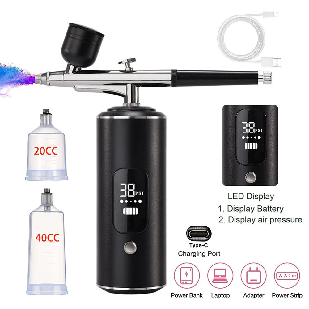 - Wireless Convenience: Equipped with a 900mAh rechargeable lithium battery, this airbrush pen can be conveniently recharged using the included USB Type-C cable. Enjoy cordless operation, allowing you to use it anywhere, anytime for various applications including at home, in the office, studio environments, and even outdoors.