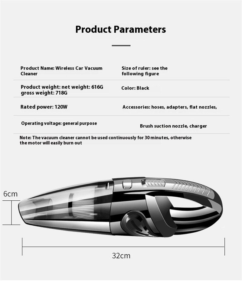 -Strong suction, 120W super power motor provides strong suction, can easily absorb hair, food residue, particles, etc.