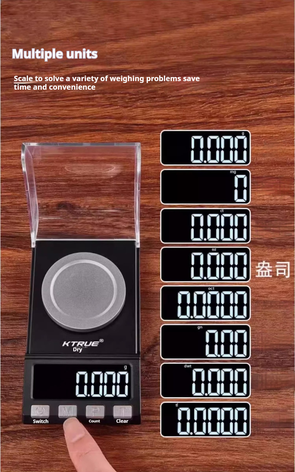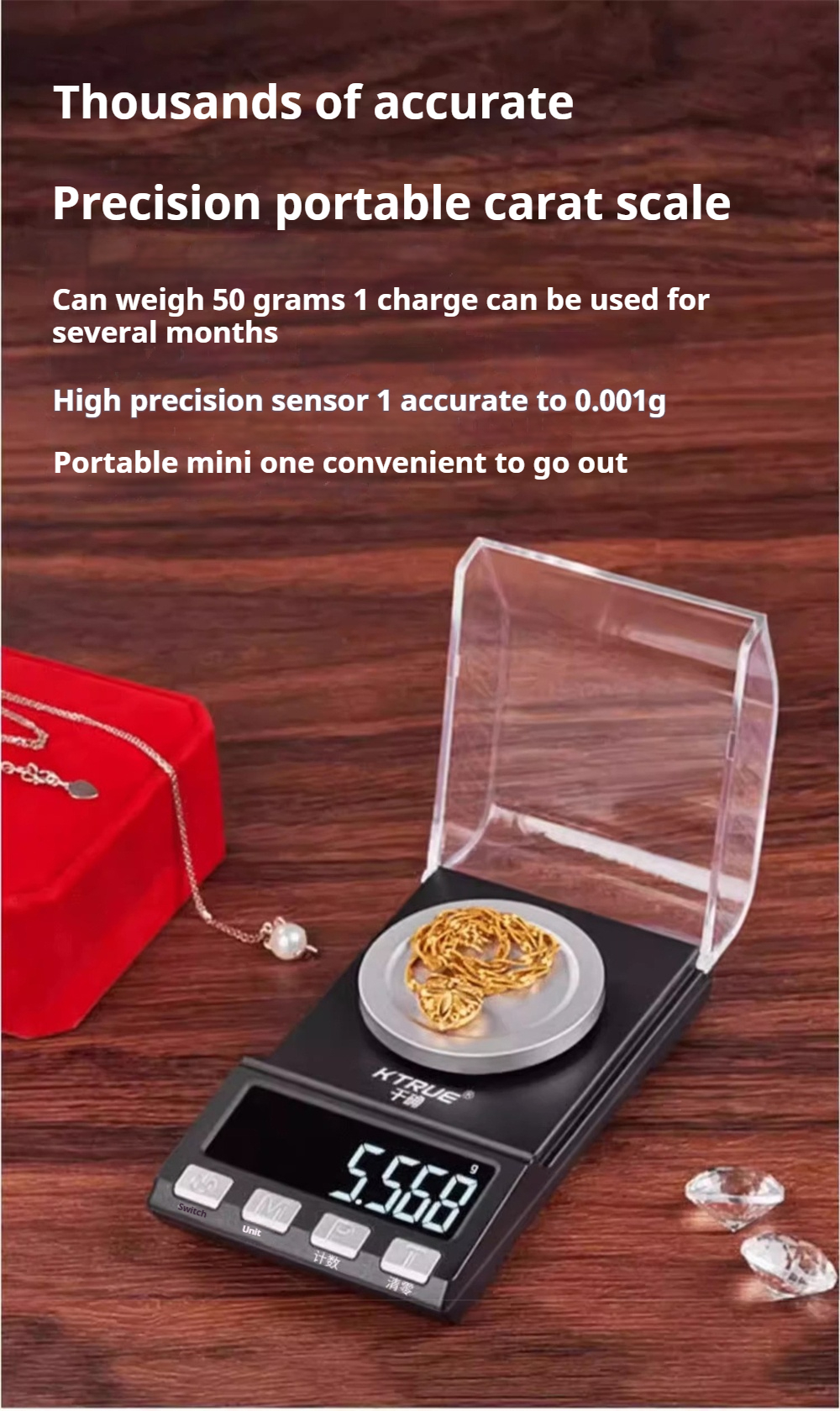 * Precision Accuracy: Provides ultra-high accuracy of 0.001g to handle precise measurements, perfect for weighing valuables like jewelry and diamonds.