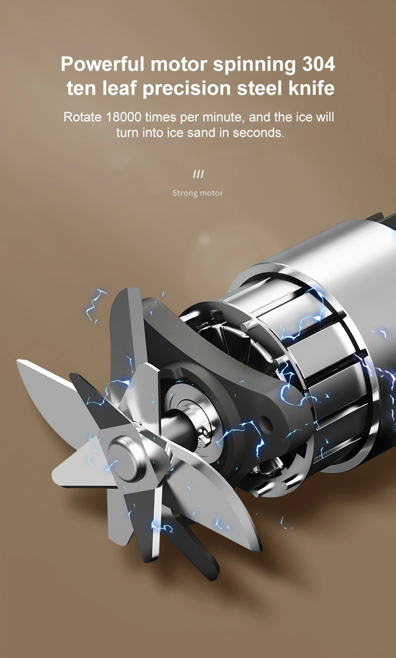 Powerful Performance: The mini portable blender is compact and powerful enough to effortlessly break down frozen fruits, leafy greens, and even small ice cubes. Equipped with 10 stainless steel blades, the kitchen blender spins up to 18,000 rpm to provide superior blending results for all your favorite beverages.