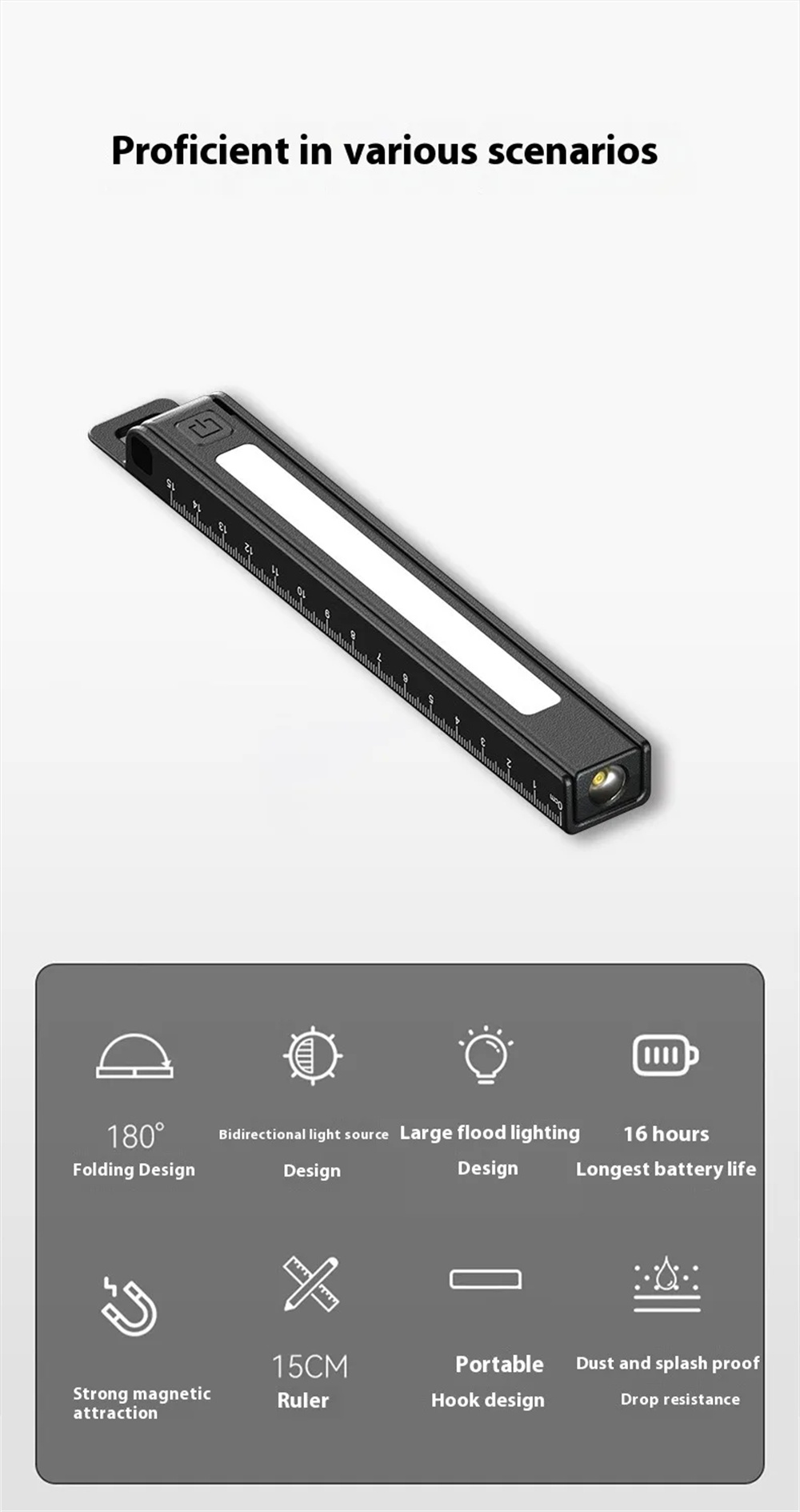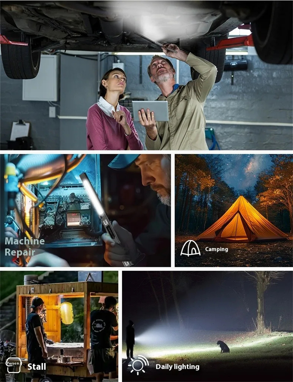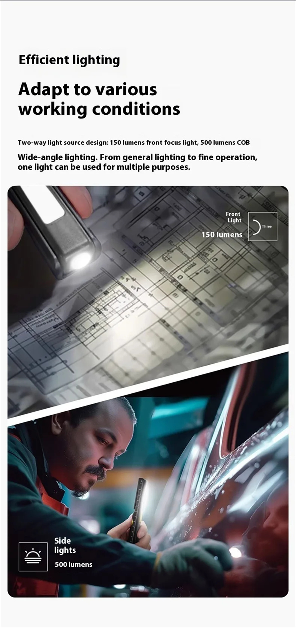 3.180° Flip Adjustment: The 180° flip adjustment feature allows flexible positioning of the work inspection flashlight, providing optimal lighting angles for any task at hand.