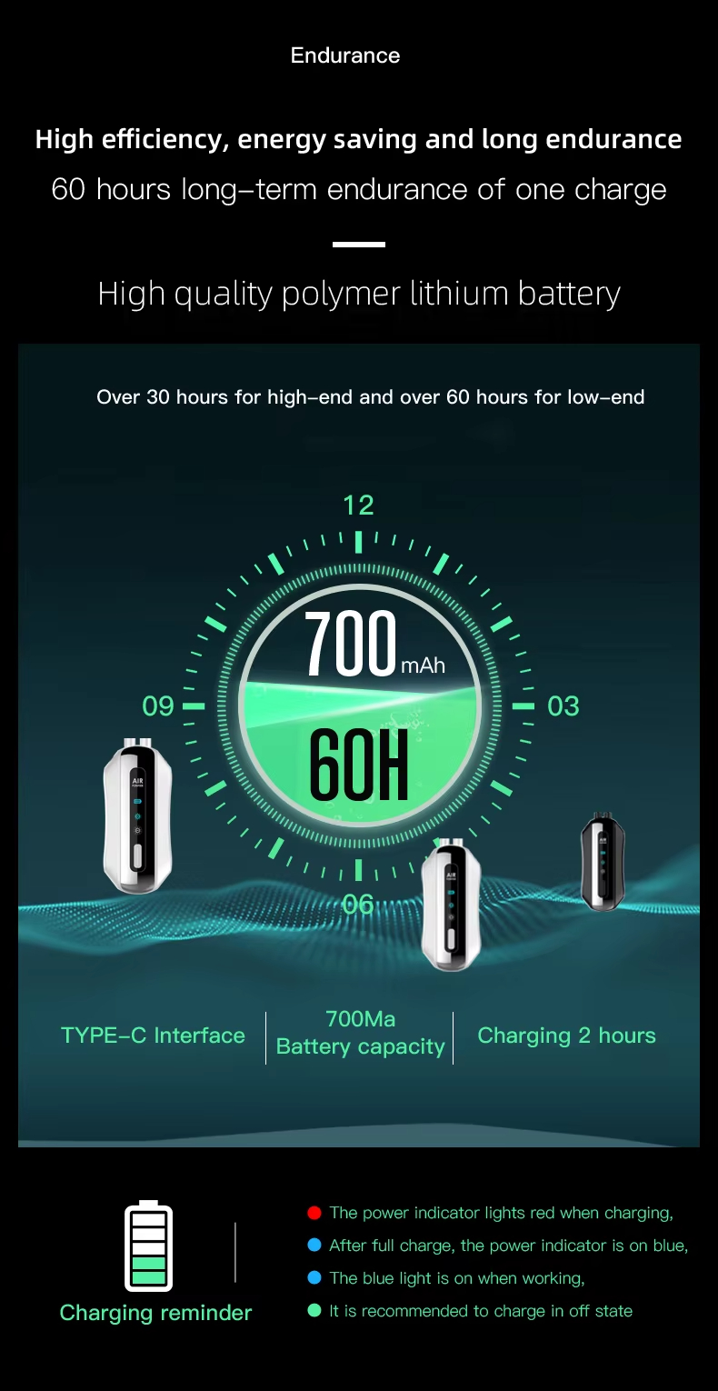 With a single charge, the device operates continuously for over 30 hours on high concentration mode, providing uninterrupted air purification when you need it most.