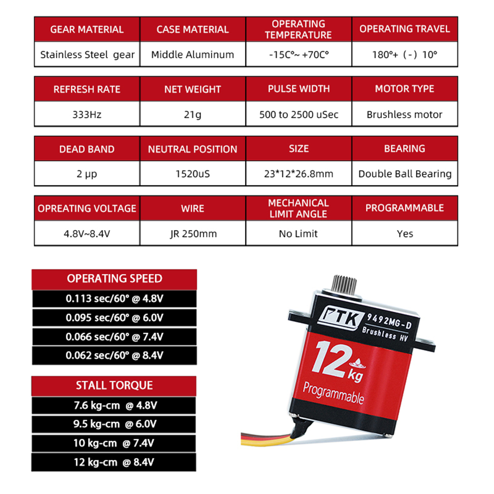 Stall Torque @ 8.4V: 12 Kg-Cm