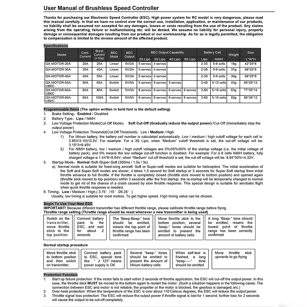 BEC Output Capability: 5 servos (2S Lipo), 4 servos (3S Lipo)