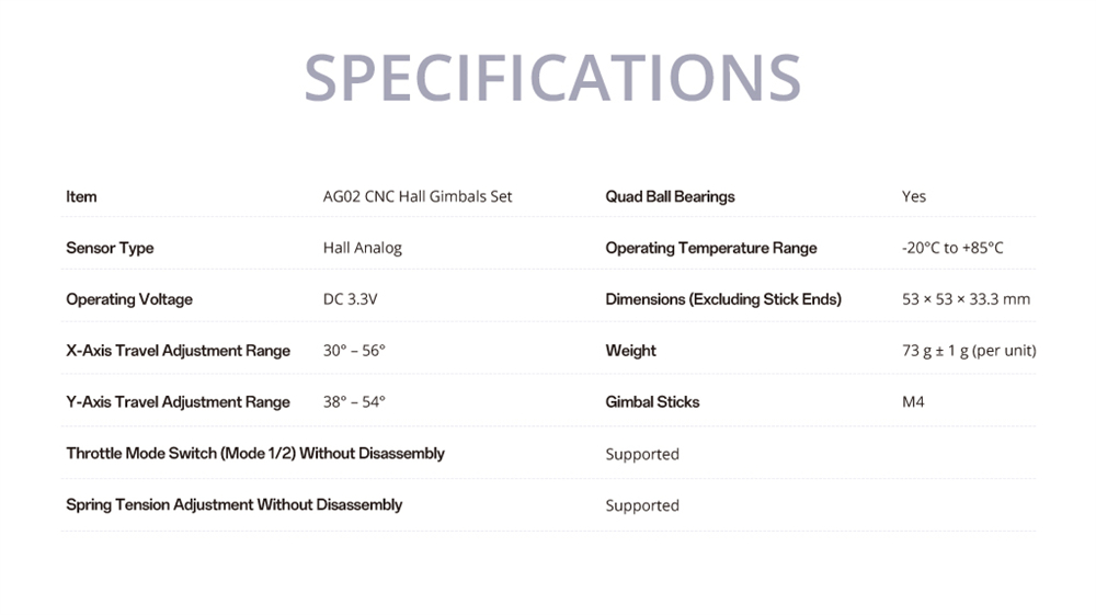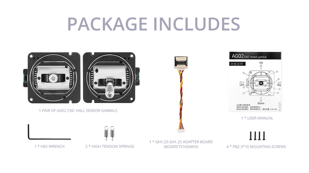 Item: AG02 CNC Hall Gimbals Set (Throttle + Centering)