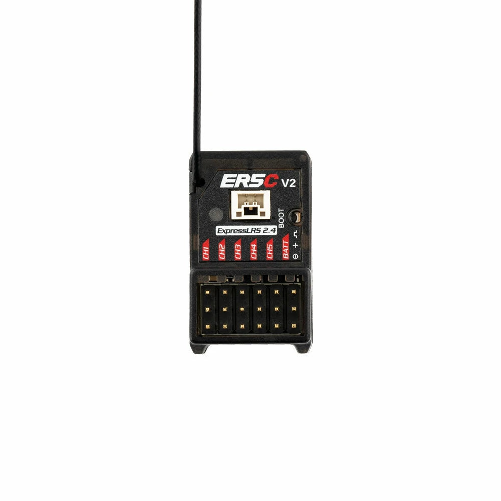 ER5C V2 receiver is based on the high-performance, revolutionary ExpressLRS system, featuring high reliability, highly flexible configuration, ultra-quick response speeds, and an ultra-long receiving range, bringing with it a brand-new usage experience.The ER5C V2 ELRS receiver can drive up to 5 servos and has built-in receiver voltage telemetry and battery telemetry with the ability to automatically detect which voltage input to use. It is designed for all types of surface & marine R/C applications.