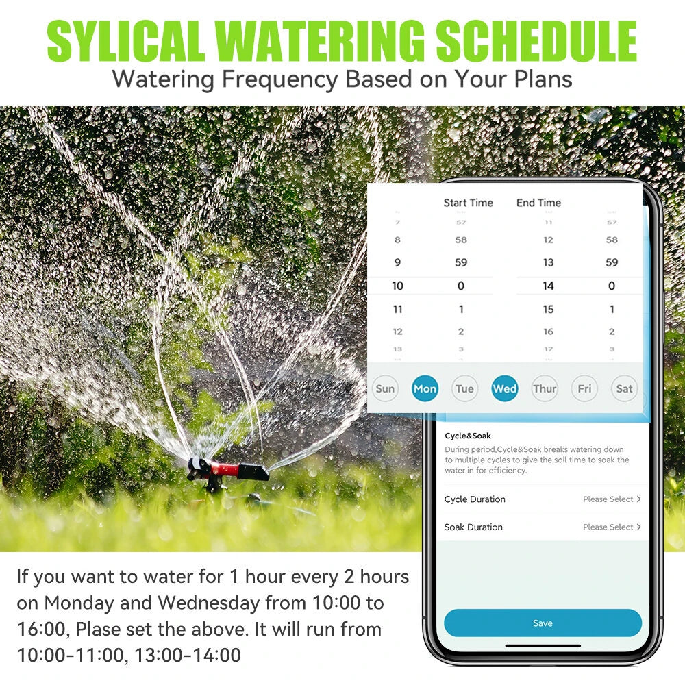 2. Customizable Watering Schedules: Tailor the watering schedule to your garden's needs with up to 16 cycles per day. Utilize the Cycle and Soak feature to enhance soil absorption and efficiency.