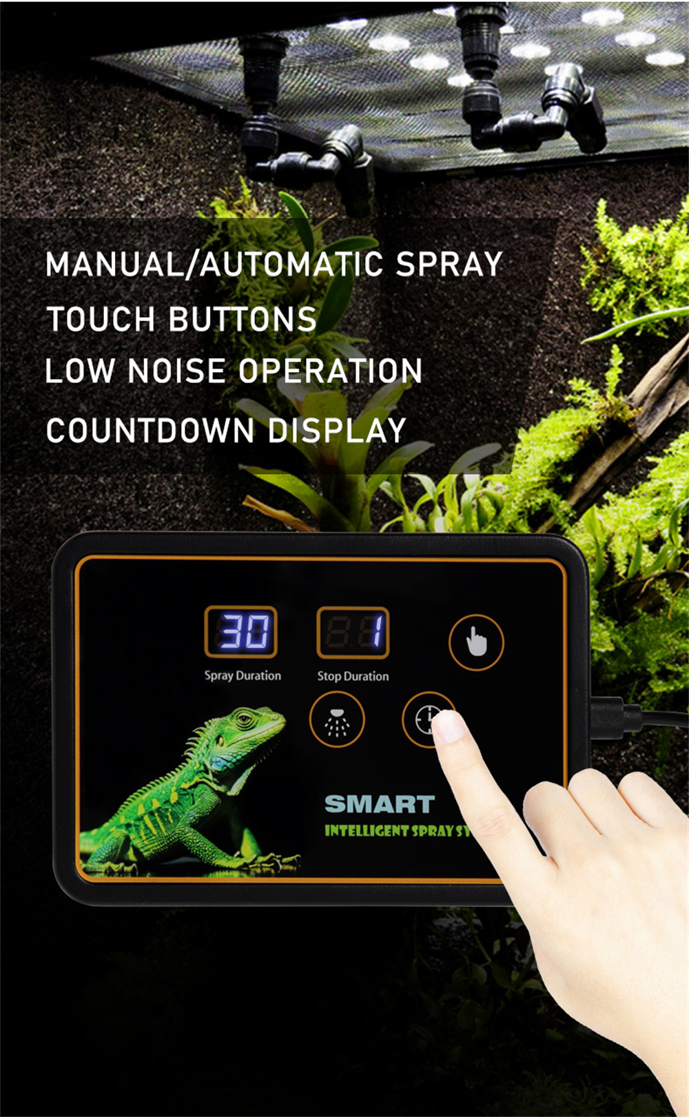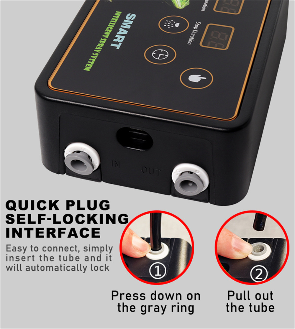 1. Intelligent timer supports adjustable spray intervals from 1 hour to 5 days for customizable hydration.