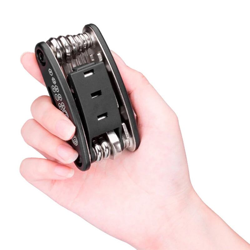 3.Lightweight and portable: this bicycle repair kit is small enough. You can put the multitools in your pocket. Foldable design, compact and portable, mini integrated process.