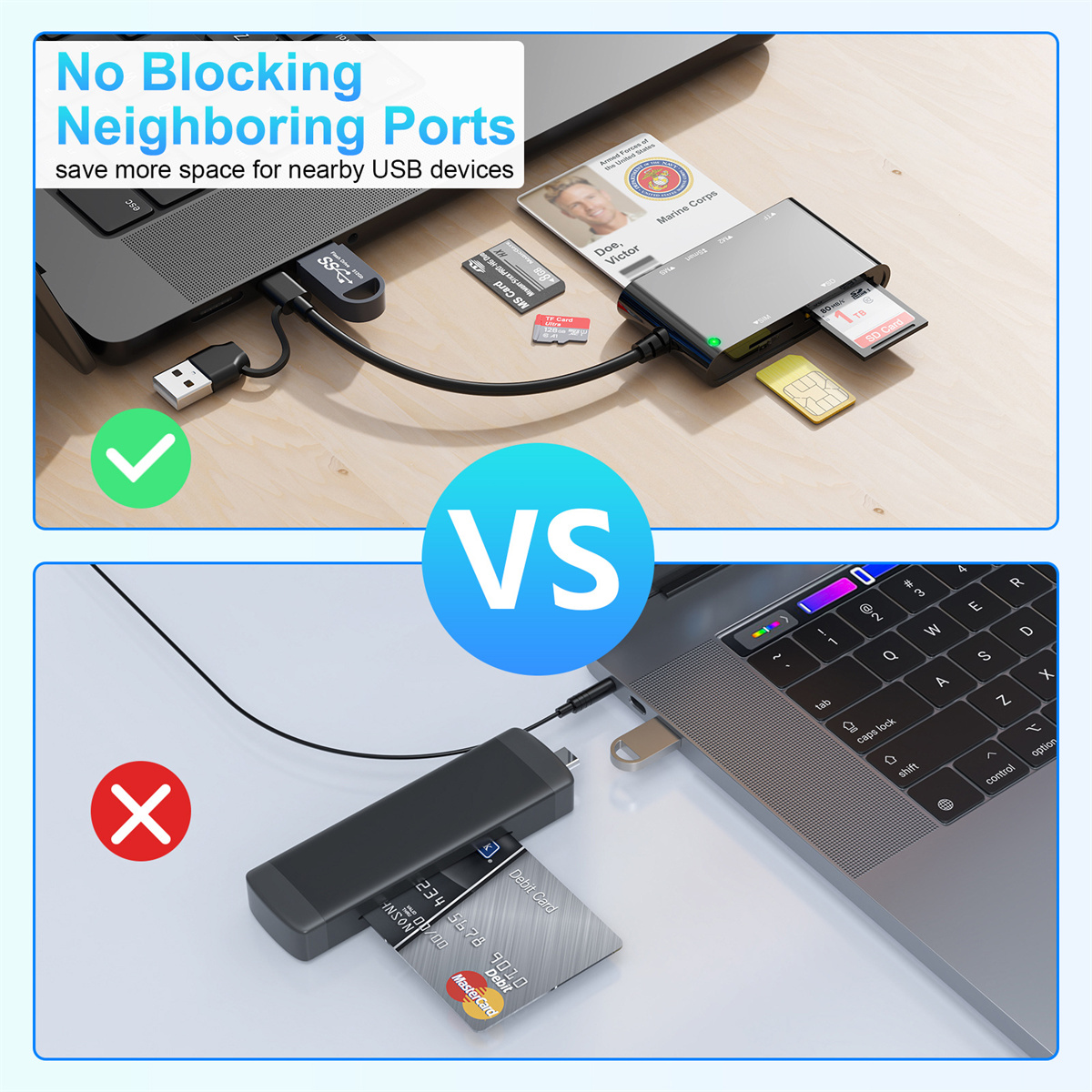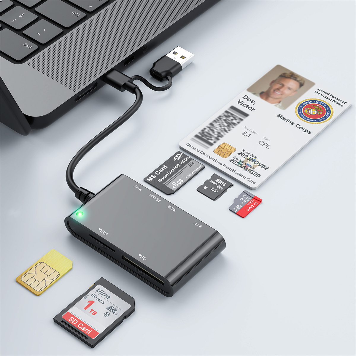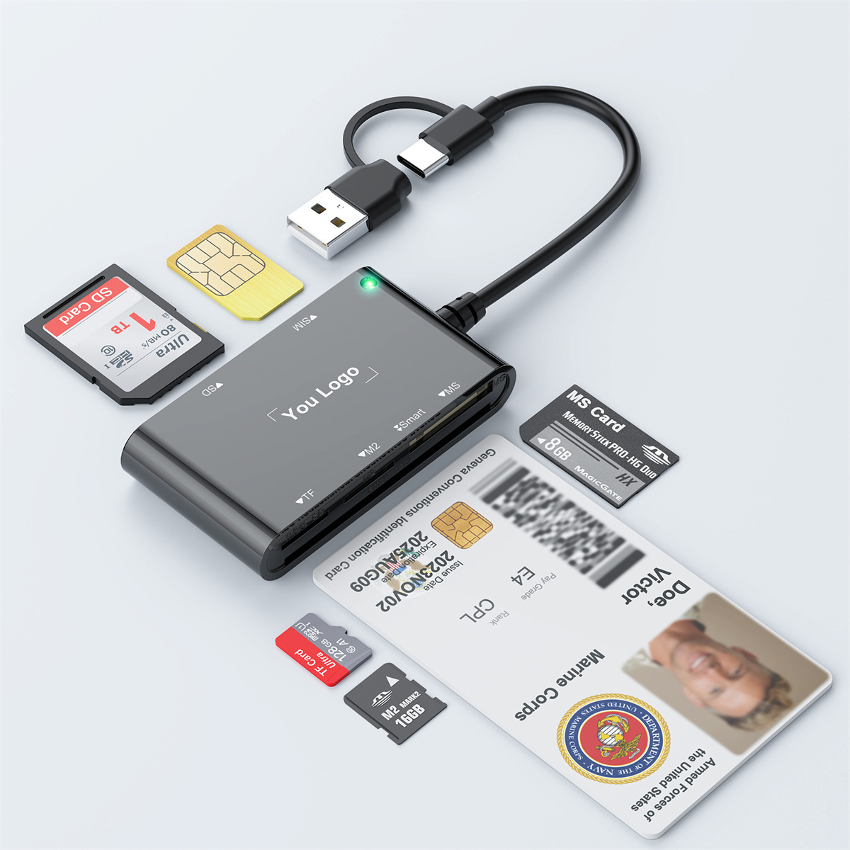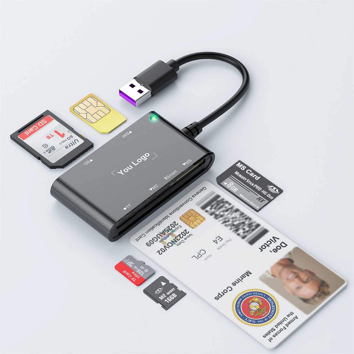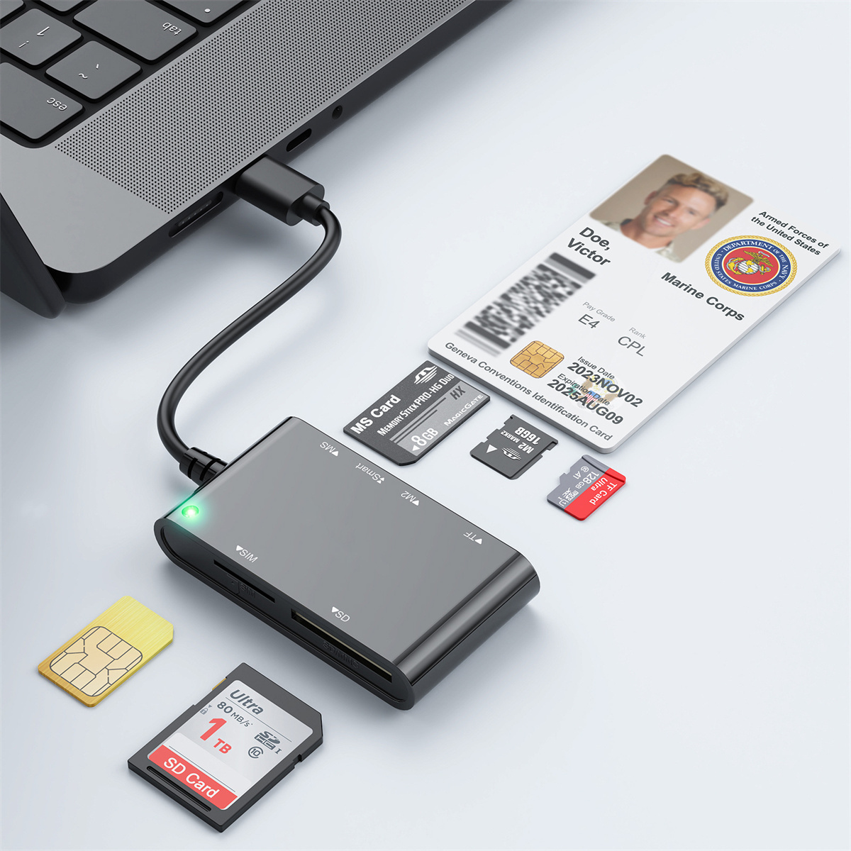1. 6-in-1 Multi-functional Design: Equipped with card slots for Smart Cards, SIM Cards, SD/MMC, Micro SD, M2, and MS cards.
