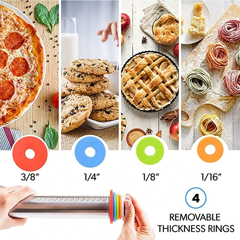 - Adjustable Thickness Rings: With 4 different thickness rings (2mm, 3mm, 6mm, and 10mm), this rolling pin allows you to roll dough to your exact desired thickness, ensuring perfect baking results each time.