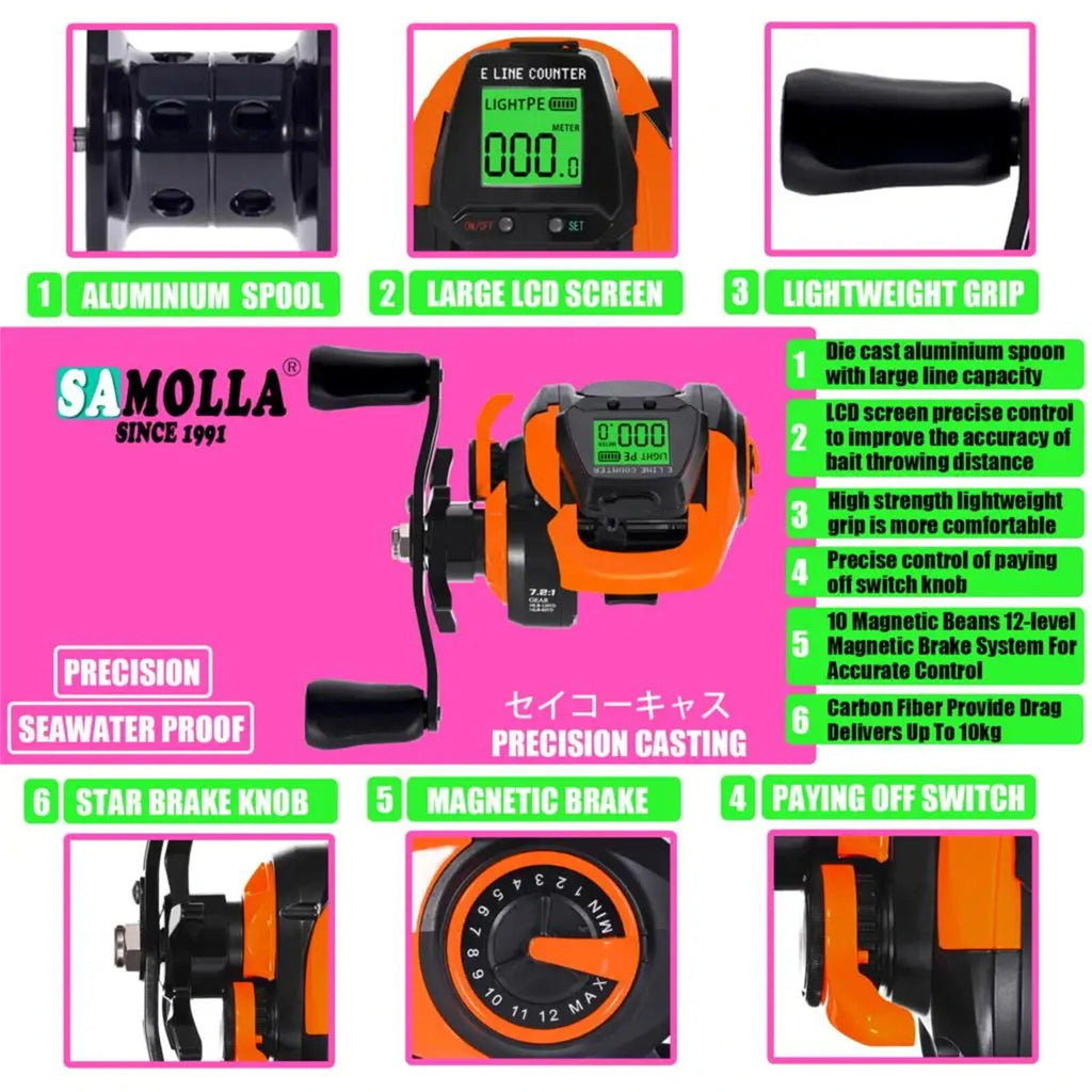 * Product Analysis: High Strength Grip, Star Drag, Outlet Hole, Cast Control Knob, Magnetic Brake System