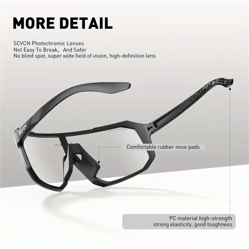 • Photochromic lenses: The lenses change color based on the amount of light, providing optimal visibility in different lighting conditions.