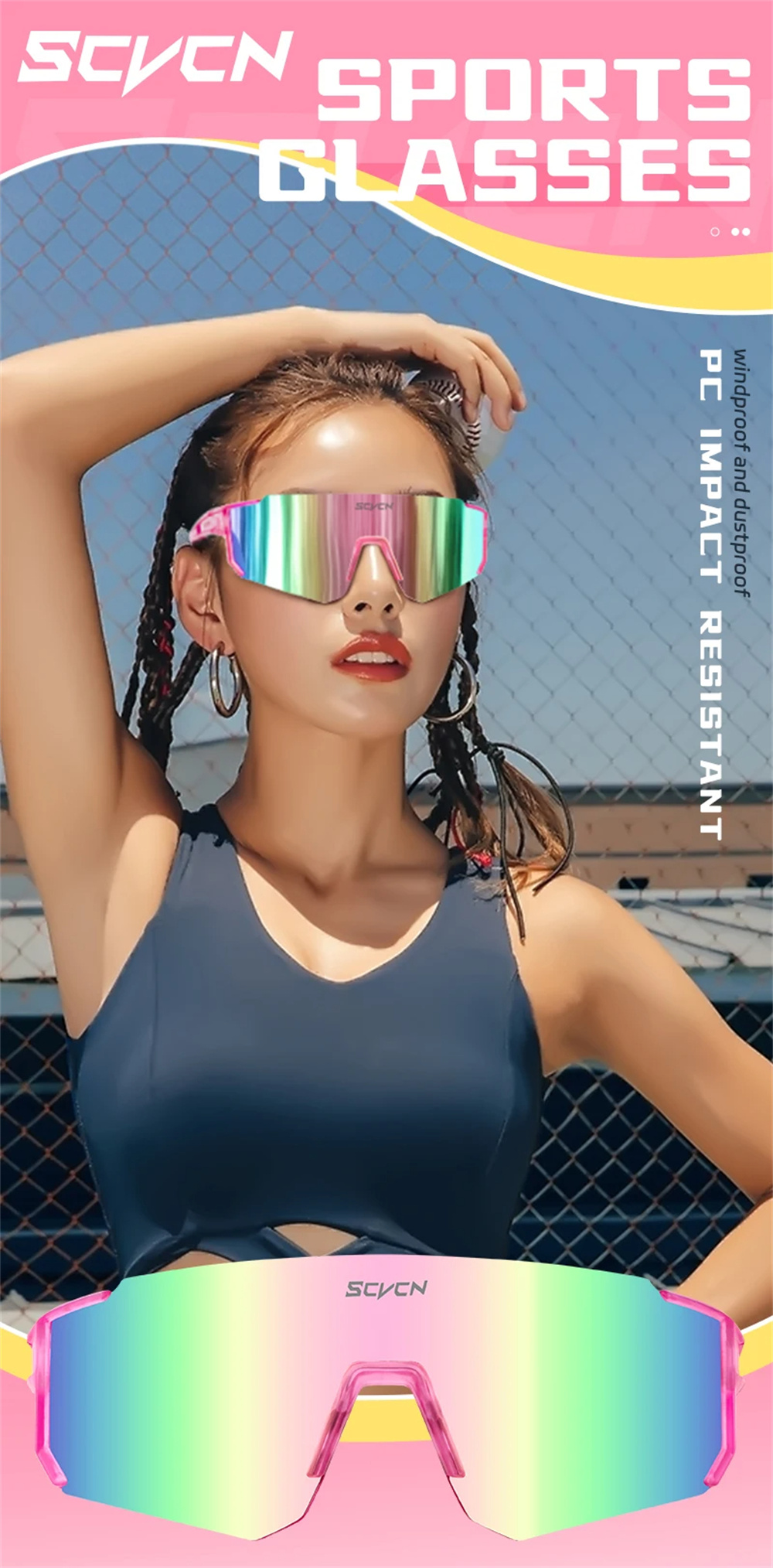 1.It has a UV400 protective coating that blocks harmful UVA and UVB rays, eliminating glare, reducing eye fatigue, and making the landscape clearer and smoother. Protect your eyes from sand, wind and sun. Lenses come in a wide range of color combinations. It can withstand pressure without breaking. Plus, they are very light.