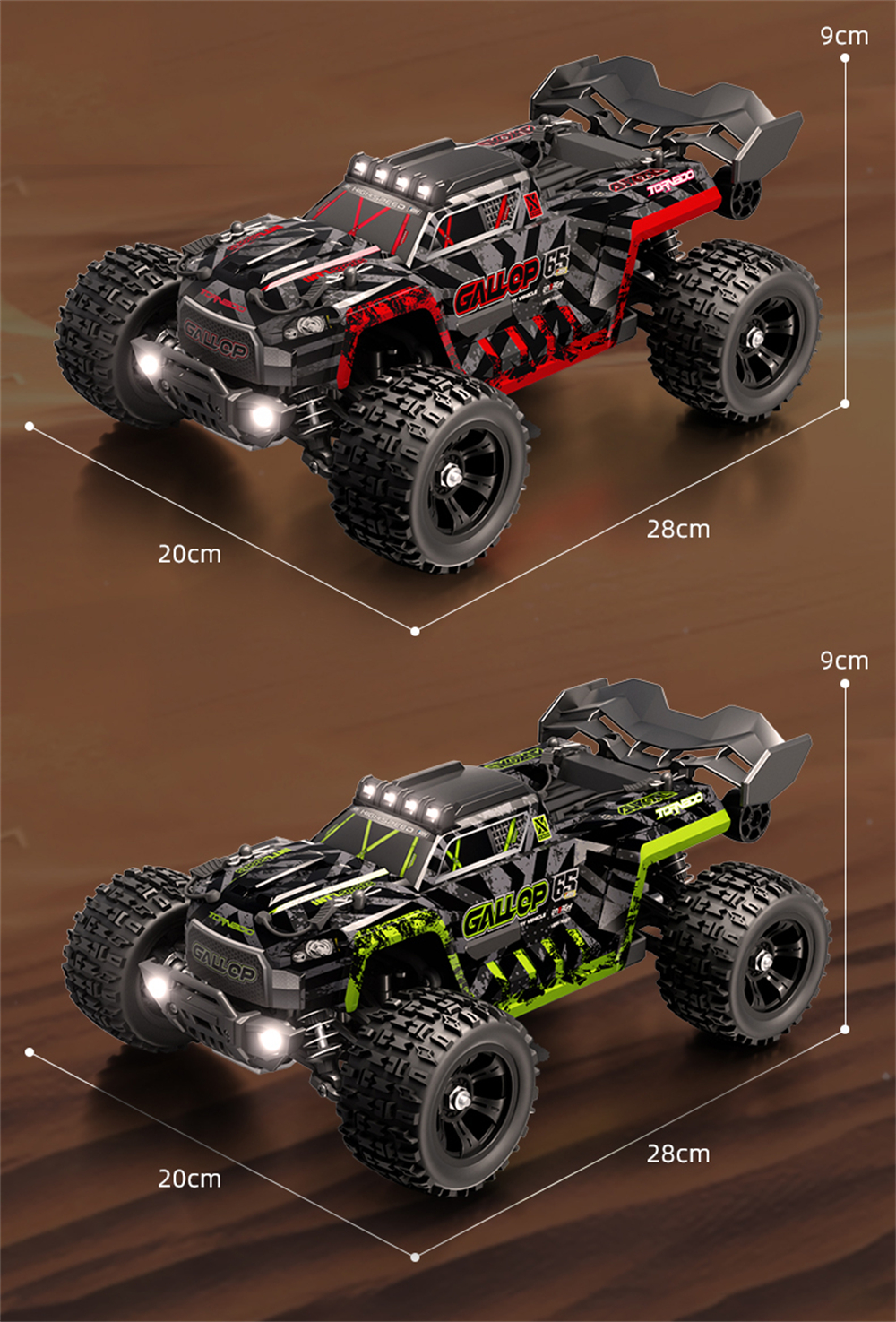 Car Size:27.5*19*10.3cm Wheelbase:16.5cm Track Width:15.5cm Tire Diameter:6.7cm Remote Controller Size:12.6*8.2*18.5cm Box Size:29.5*15.5*22cm |