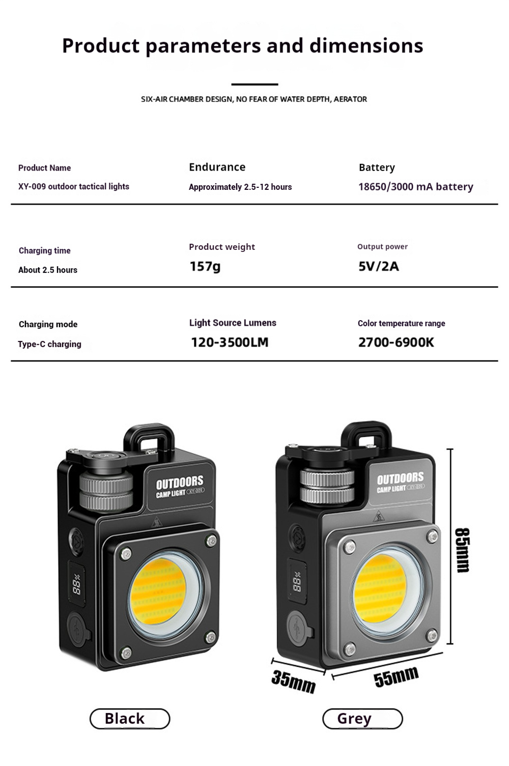 1.Versatile Endurance: The XY-009 Outdoor Tactical Light provides between 2.5 to 12 hours of lighting, powered by a long-lasting 18650/3000mAh battery.