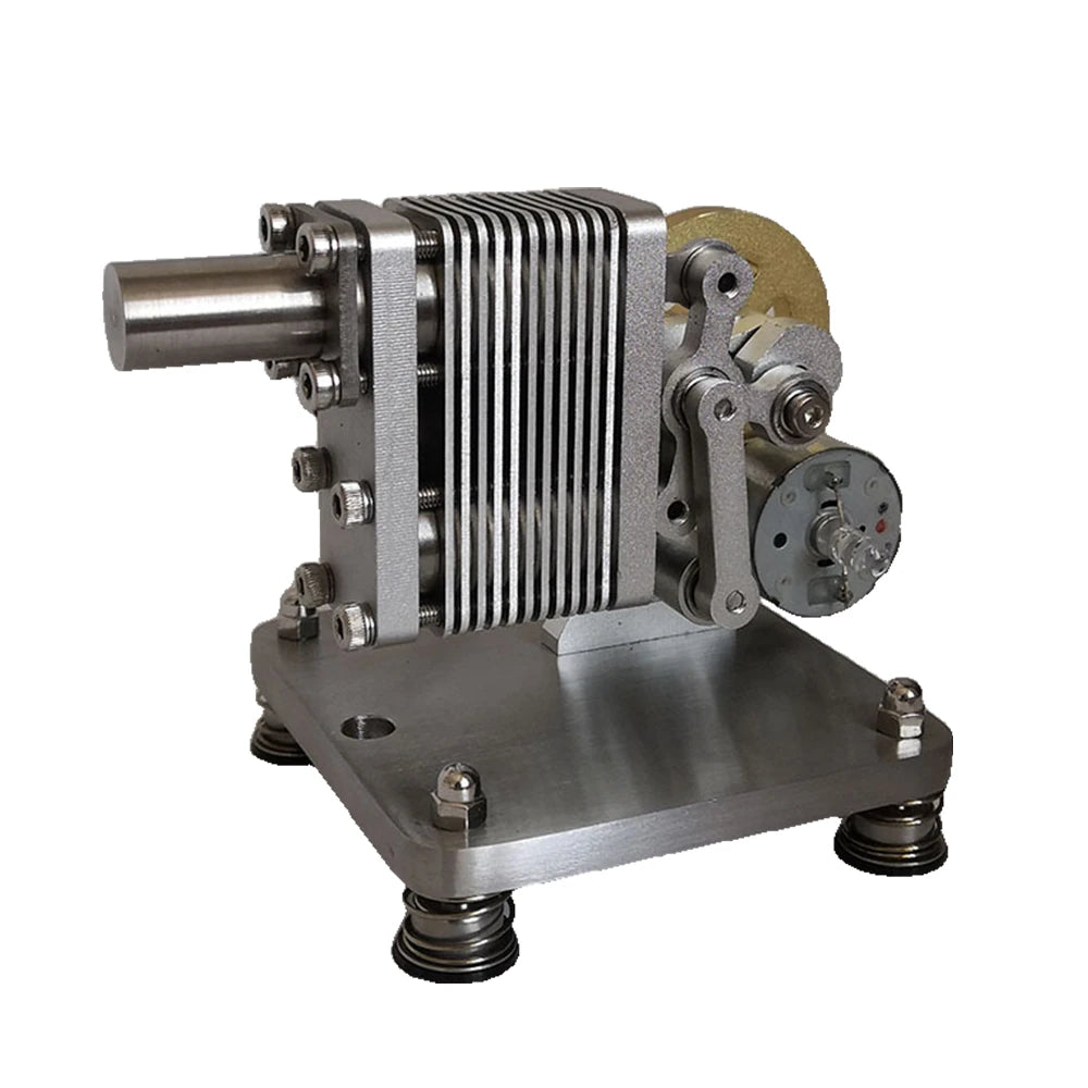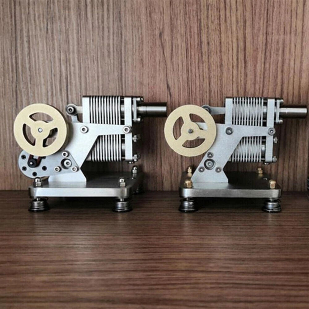 Significance and Value of Use:The product can be used as a decoration with collectible value. The principle of the Stirling engine model is intuitive. It can be used as an educational toy to help develop children's interest in learning. It can also be used as a teaching experiment device for classroom use. , Simple and convenient, entertaining and fun, through the hands-on operation, a more intuitive understanding of the principles of the Stirling engine model.Specification:Model: SH-015Product Name: Rocker Arm Stirling Engine ModelColor: As ShownMaterial: MetalNumber of Cylinders: 2Bore Diameter x Stroke: 10mm x 10mmSpeed: 3700-4000 rpmFlywheel Diameter: 36mmProduct Dimensions: 10.8 x 7 x 7.8cmWeight: 450gPackage Dimensions: 13 x 9 x 10cmFor Age: 8 years old and aboveFeatures:- This Stirling engine model adopts T-shaped rocker crank structure, which has the characteristics of high power and high speed;- The moving parts of the whole machine are inlaid with rolling bearings, and the friction coefficient is low;- The cylinder piston is precision ground with SUJ-2 alloy steel, with clearance Precision, high hardness and good wear resistance;- The overall connection is fixed by screws, all connection parts are sealed by copper pads, and the performance is reliable and high temperature resistance;- High-density aluminum alloy heat sink, higher heat exchange rate;- Base with double-layer spring shock absorption, Smoother operation;- All-metal material, ultra-small size, compact structure, high reliability;- Industrial-grade processing level, creating an all-metal exquisite model, unique and innovative, is a novel fashion gift and collectible;- The whole machine is assembled by more than 150 small parts, including 12 rolling bearings, 30 stainless steel bolts, etc;- The appearance parts are made of 6061 Sandblasted and oxidized surface of CNC aluminum alloy after processing.Instructions for Use and Maintenance:(1) Before use, dial the flywheel to check whether it rotates smoothly, if there is excessive resistance, check if the cylinder is blocked by sludge, and if necessary, remove the cylinder assembly and wipe the piston and cylinder with alcohol. And apply graphite lubricant on the surface of the piston;(2) Inject 95% alcohol into the alcohol lamp (capacity is less than two-thirds), then ignites the alcohol lamp and place it under the heating cylinder to heat for 40 seconds (the flame should be in the heating zone as much as possible) , At last you can rotate the flywheel at high speed;Note:(1) The heating source will cause the body to generate high temperature during operation. Do not touch the high temperature parts such as the heating cylinder and heat sink, otherwise it will cause thermal burns;(2) Use only ordinary alcohol lamp heat sources, and do not use windproof lighters. And other high-temperature dark fire heaters (above 500 C), otherwise it will cause damage to the piston cylinder at high temperature and high speed operation;(3) Do not apply any lubricating liquid grease to the piston cylinder, otherwise it will cause excessive resistance and fail to work;(4) The machine has a starting compression force. It is recommended that novices use the engine base to start for the first time use, which is easier to control.(5) Product data are all manually measured, there may be slight errors.Package Included:1 x Stirling Engine Model
