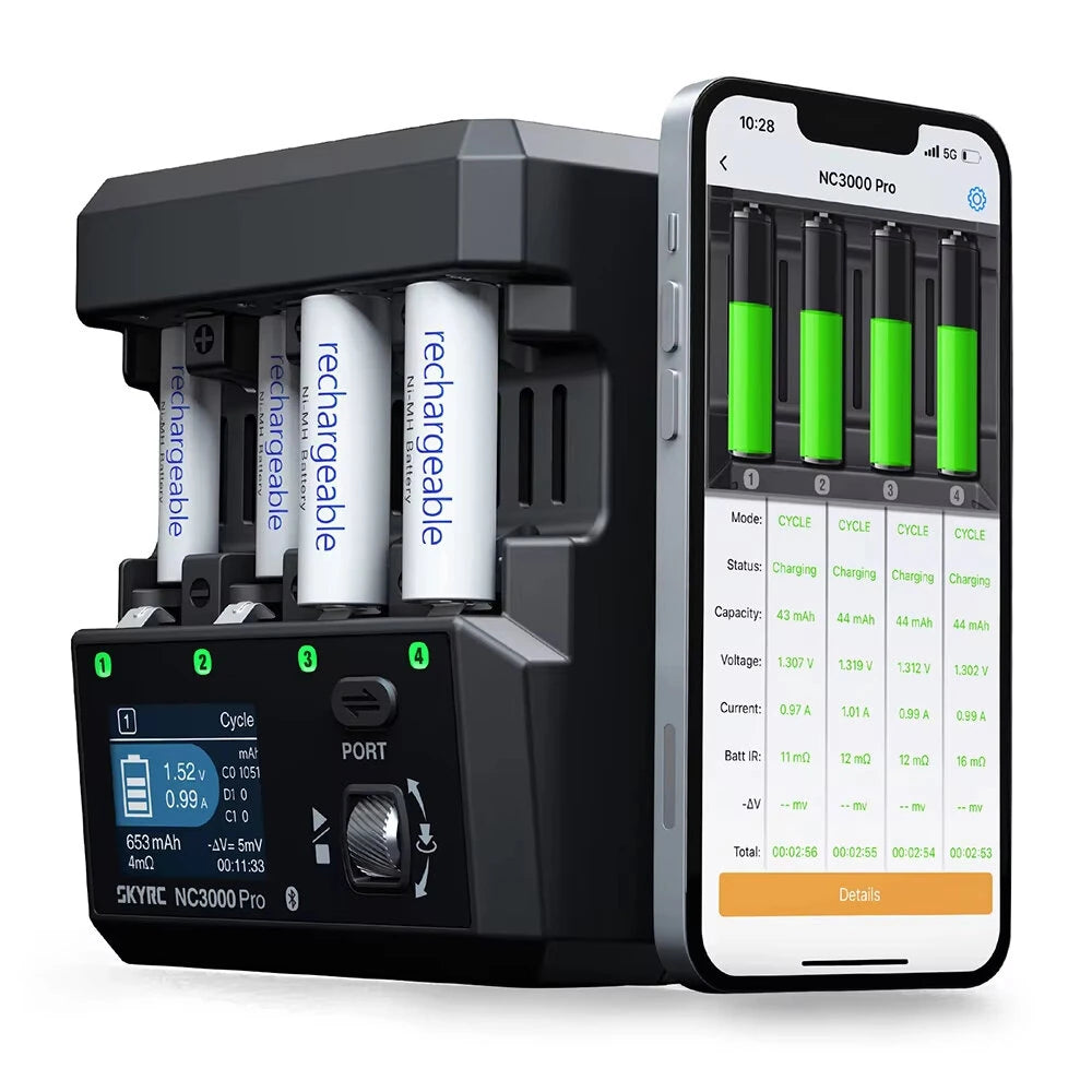 3. With four independent AA/AAA slots, NC3000 Pro can simultaneously charge up to four batteries, adjustable current from 0.20A to 3.0A.