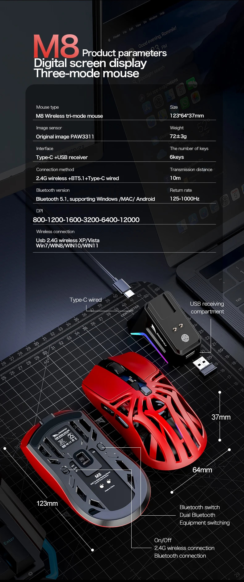 1 x SMAILWOLF M8 Tri-mode Gaming Mouse