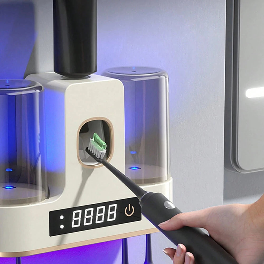 - Advanced UV Sterilization: Our Intelligent Sterilization Toothbrush Holder utilizes dual intelligent UV sterilization techniques to eliminate up to 99.99% of bacteria . By breaking down the DNA and RNA structures of harmful microorganisms, it ensures your oral hygiene tools are always safe to use.