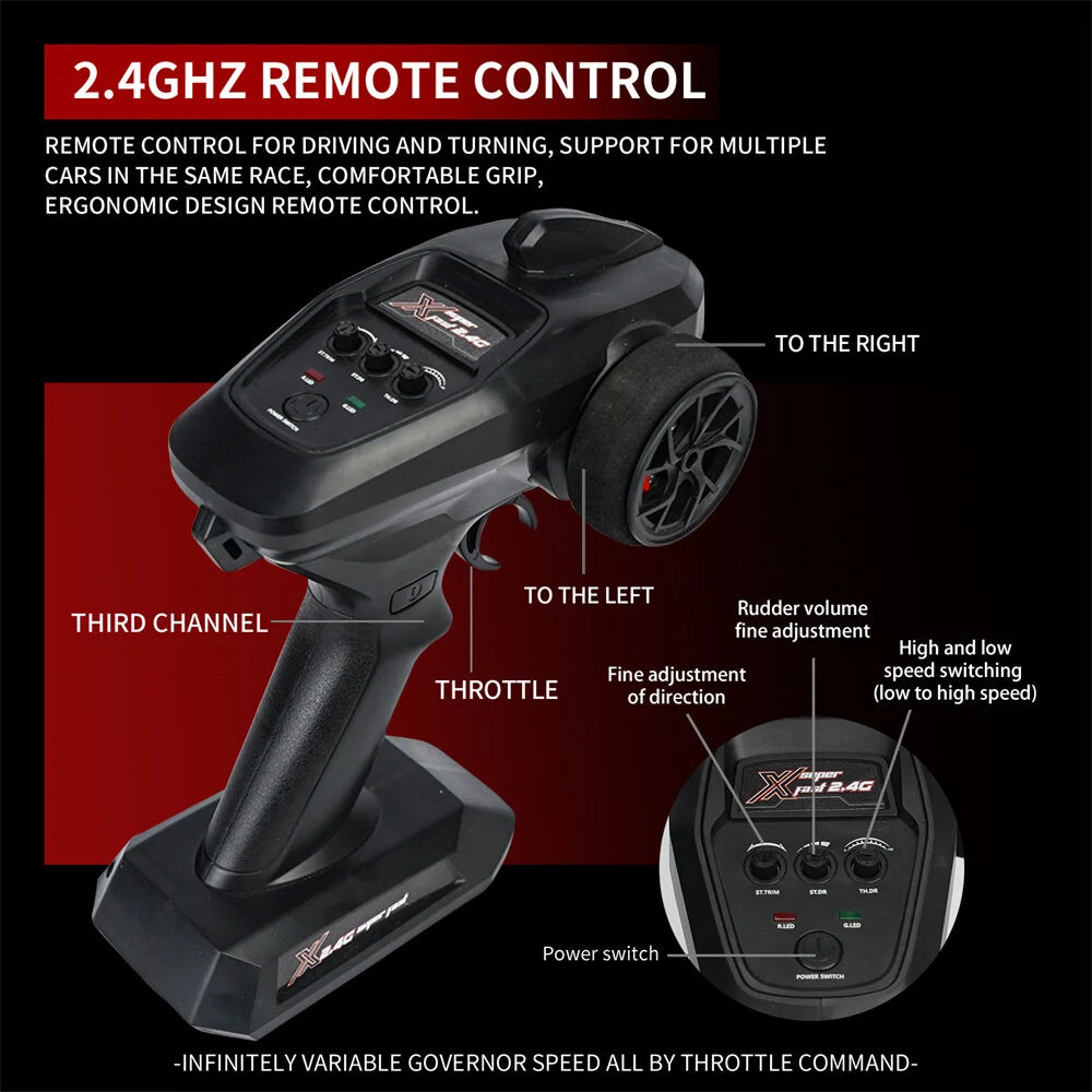 4. 2.4G full -proportion synchronization remote control system. Full proportional throttle/steering;