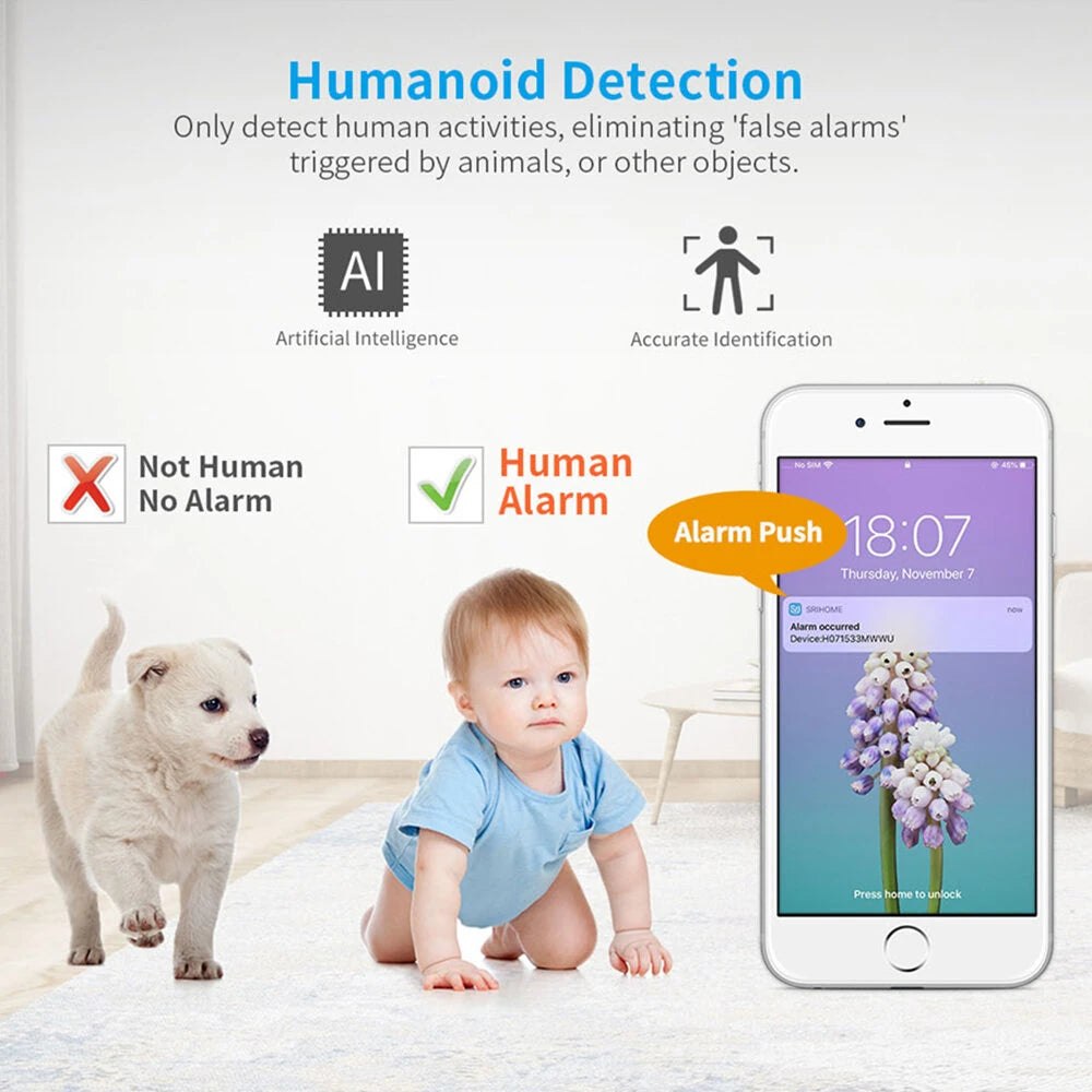 4. Humanoid Detect: Advanced AI technology to accurately differentiate human activities from animals or objects, reducing false alarms.