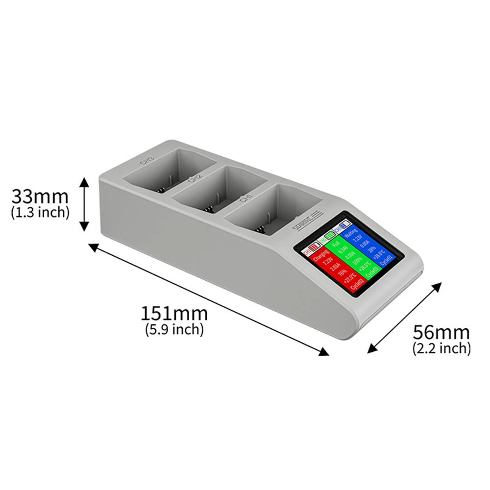- Charges three batteries sequentially with automatic detection, prioritizing higher battery capacity.