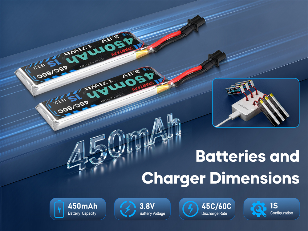 Battery: 1S 3.8V 450mAh LiHV Battery