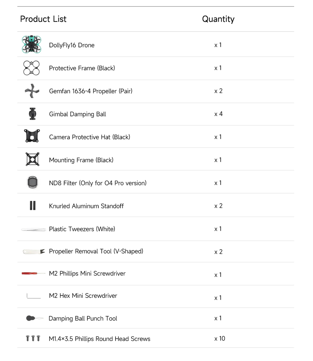 Note: Without Cam & VTX version means no camera and image transmission, you need to purchase and install them yourself.
