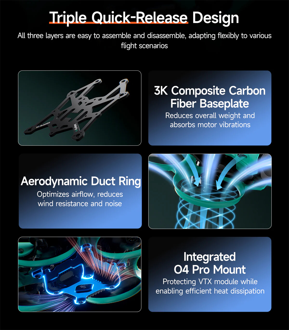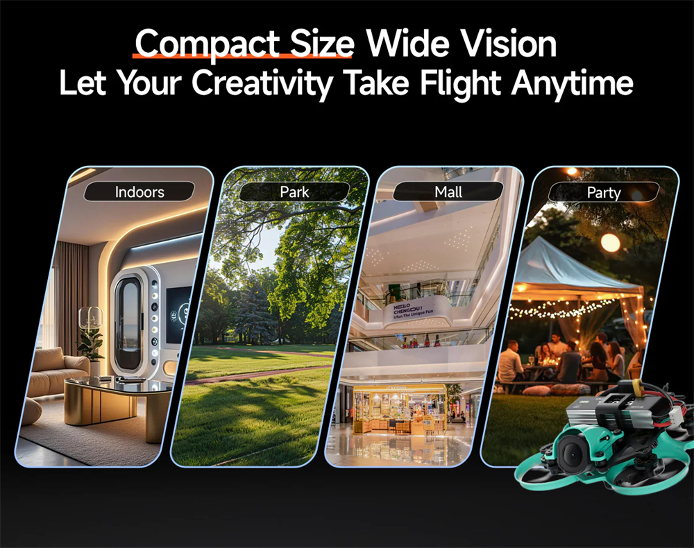 1. Compact 1.6-inch Whoop FPV drone, equipped with a DJI O4 Air Unit Pro HD VTX, video resolution and frame rate up to 4K 120fps.