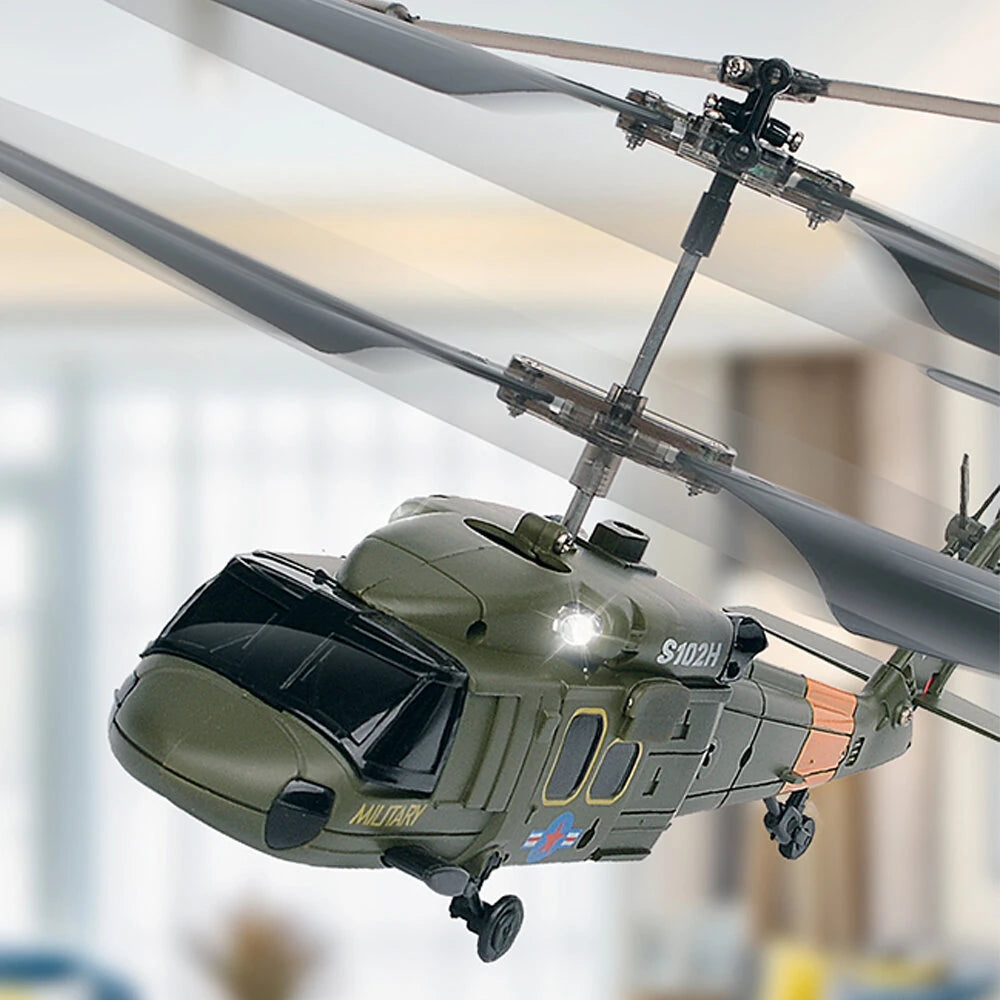 Suitable for indoor flight, with full proportional operation functions such as ascending, descending, forward, backward, left and right turns. The helicopter has one-button takeoff/landing and horizontal height