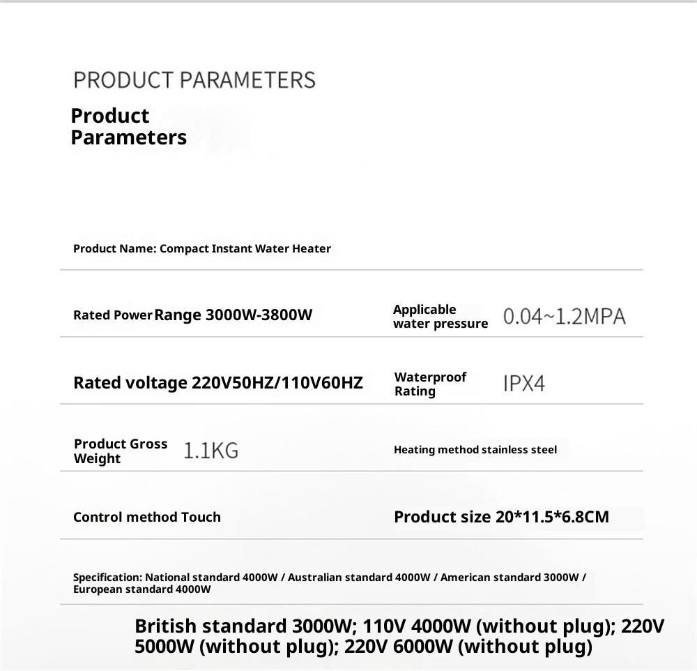 Applicable Water Pressure :0.04 ~ 1.2MPA