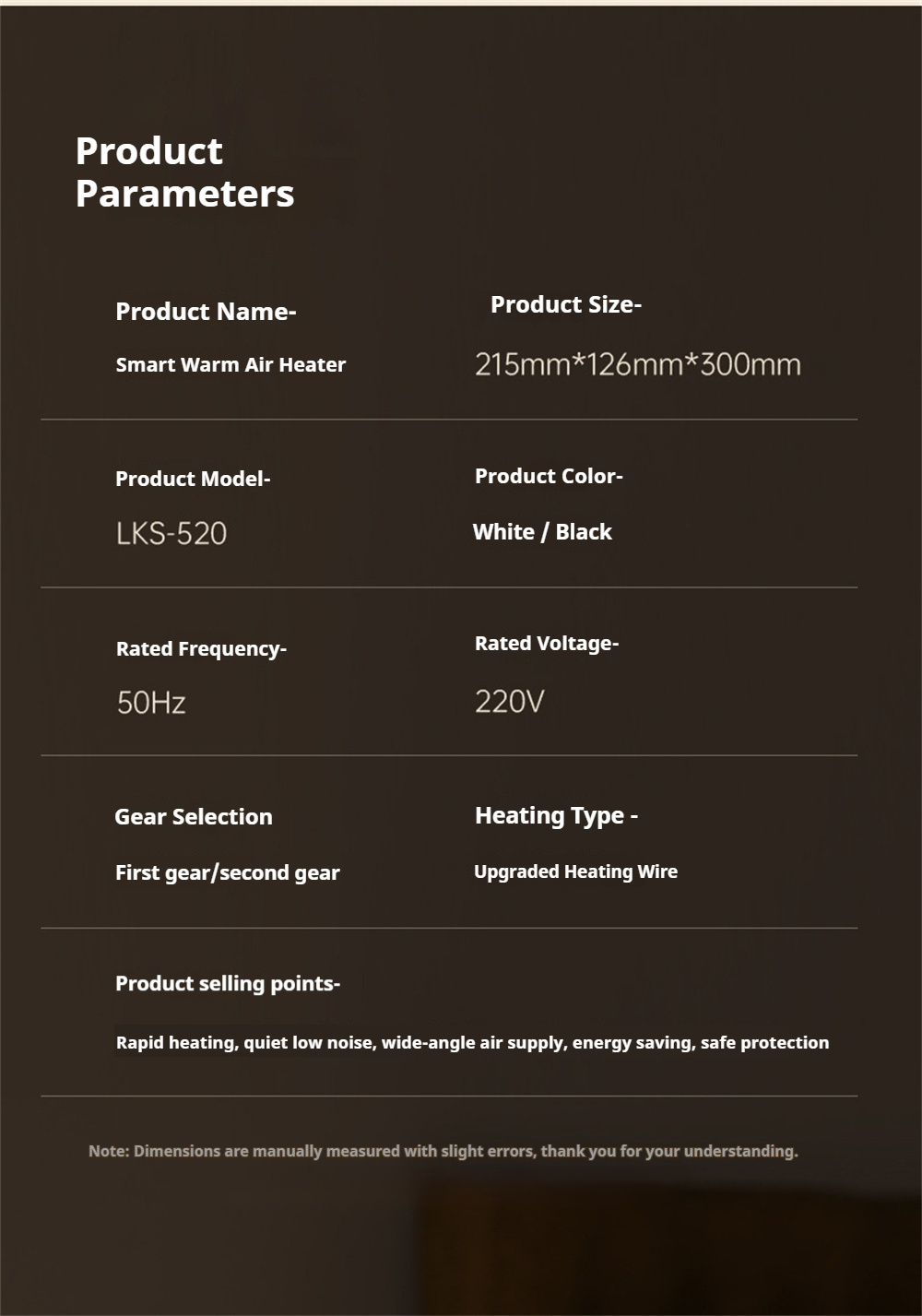 Due to the different monitor and light effect, the actual color of the item might be slightly different from the color showed on the pictures. Thank you!