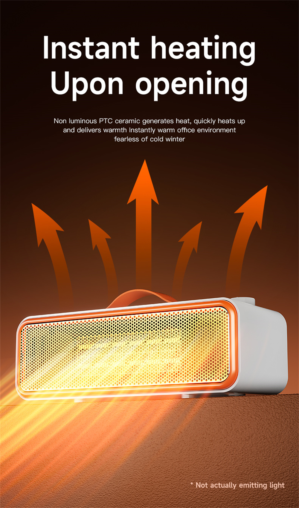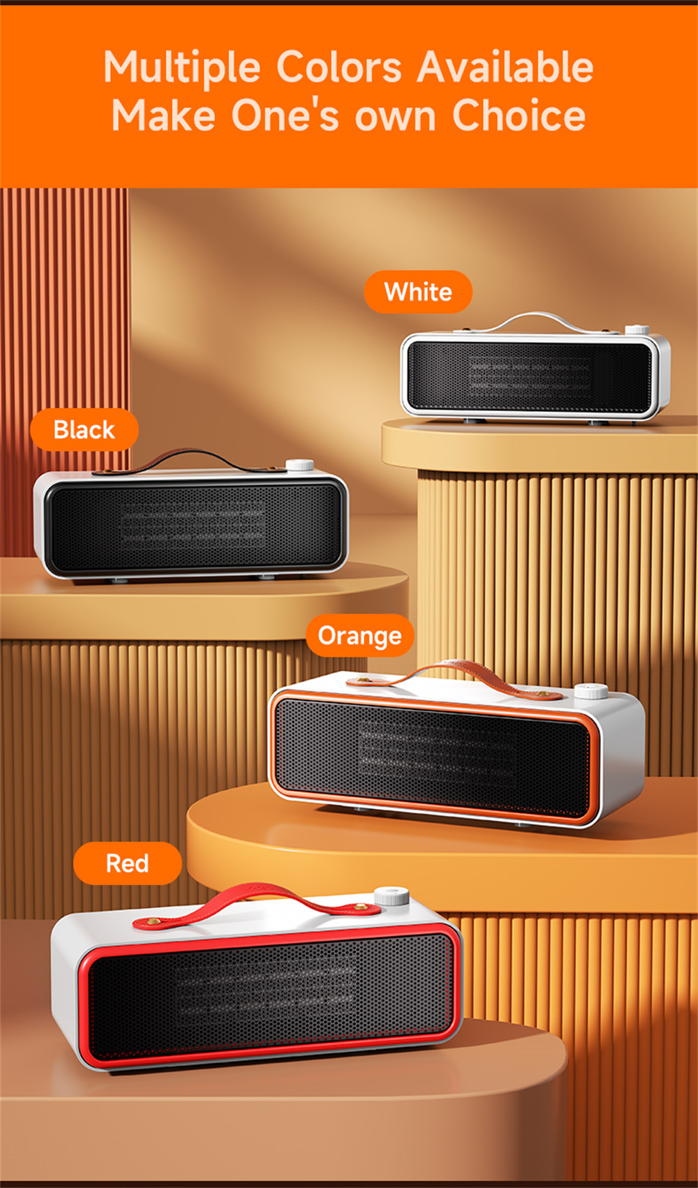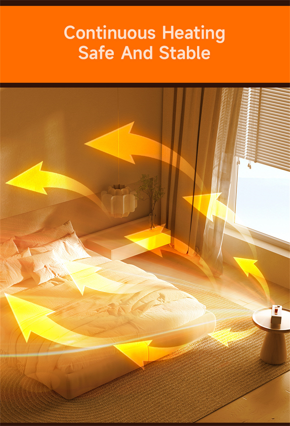 1.Two Heating Modes: Choose between low and high heat settings for personalized comfort, perfect for cold mornings or chilly evenings.2.Smart Constant Temperature Control: Automatically maintains a stable and cozy temperature, preventing overheating and ensuring energy-efficient performance.3.Wide-Angle Airflow: Enjoy balanced heat distribution with a wide-angle design that quickly warms your space evenly.4.Comprehensive Safety Protection: Built with multiple safety features including overload protection, intelligent temperature monitoring, tip-over shutoff, and anti-scald grille design for peace of mind.5.Stylish & Gift-Ready Design: Compact and elegant appearance makes it a thoughtful gift choice for Christmas or winter holidays — perfect for friends, parents, and loved ones.