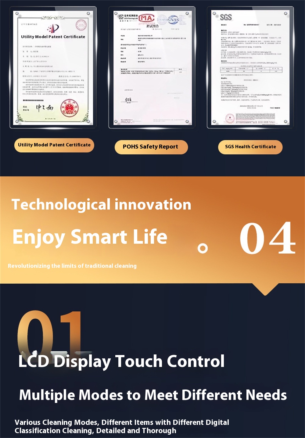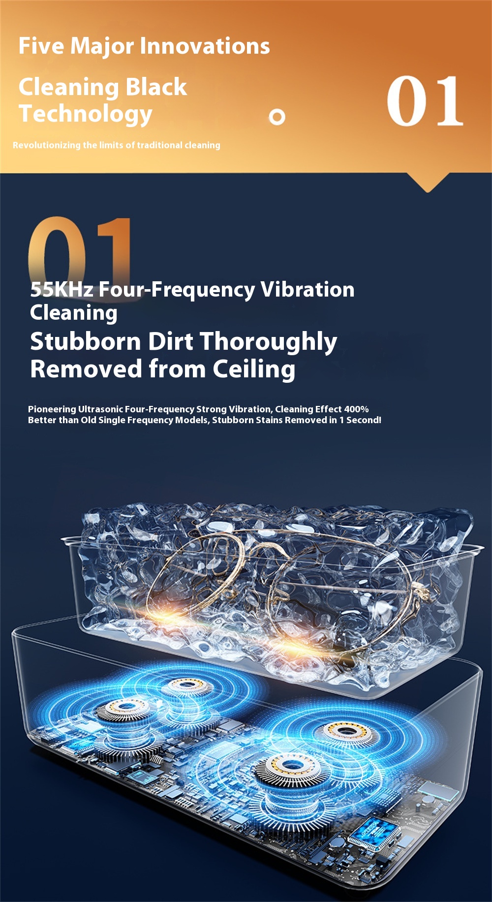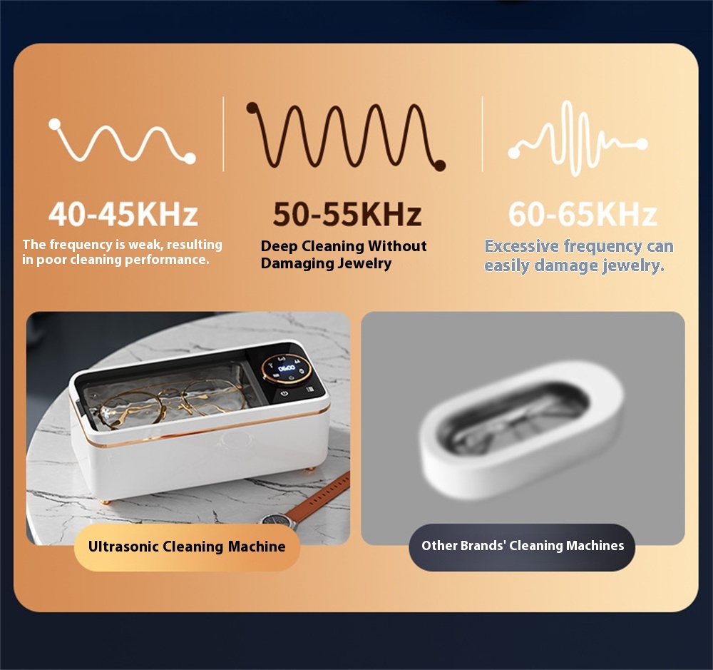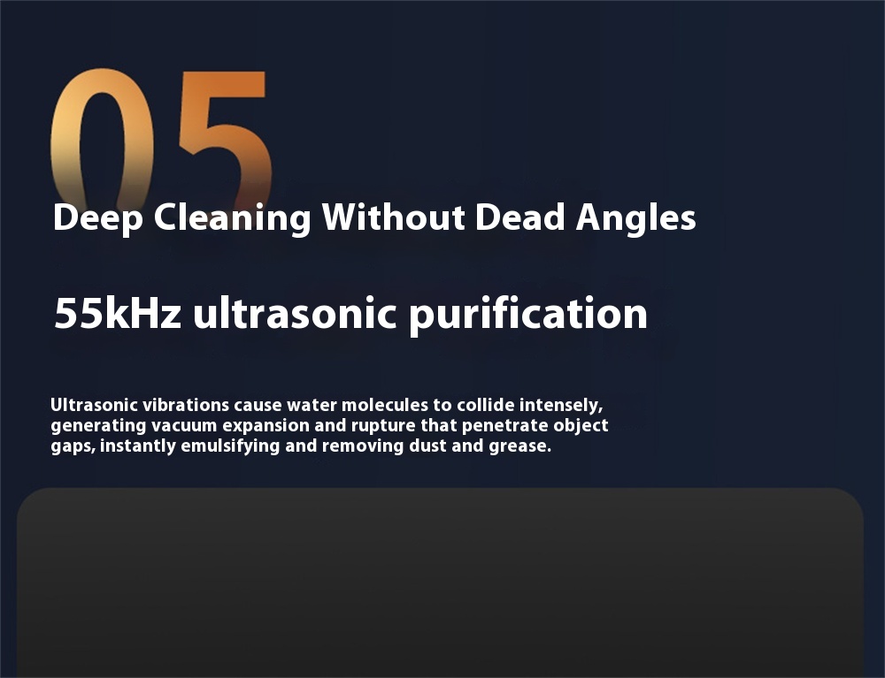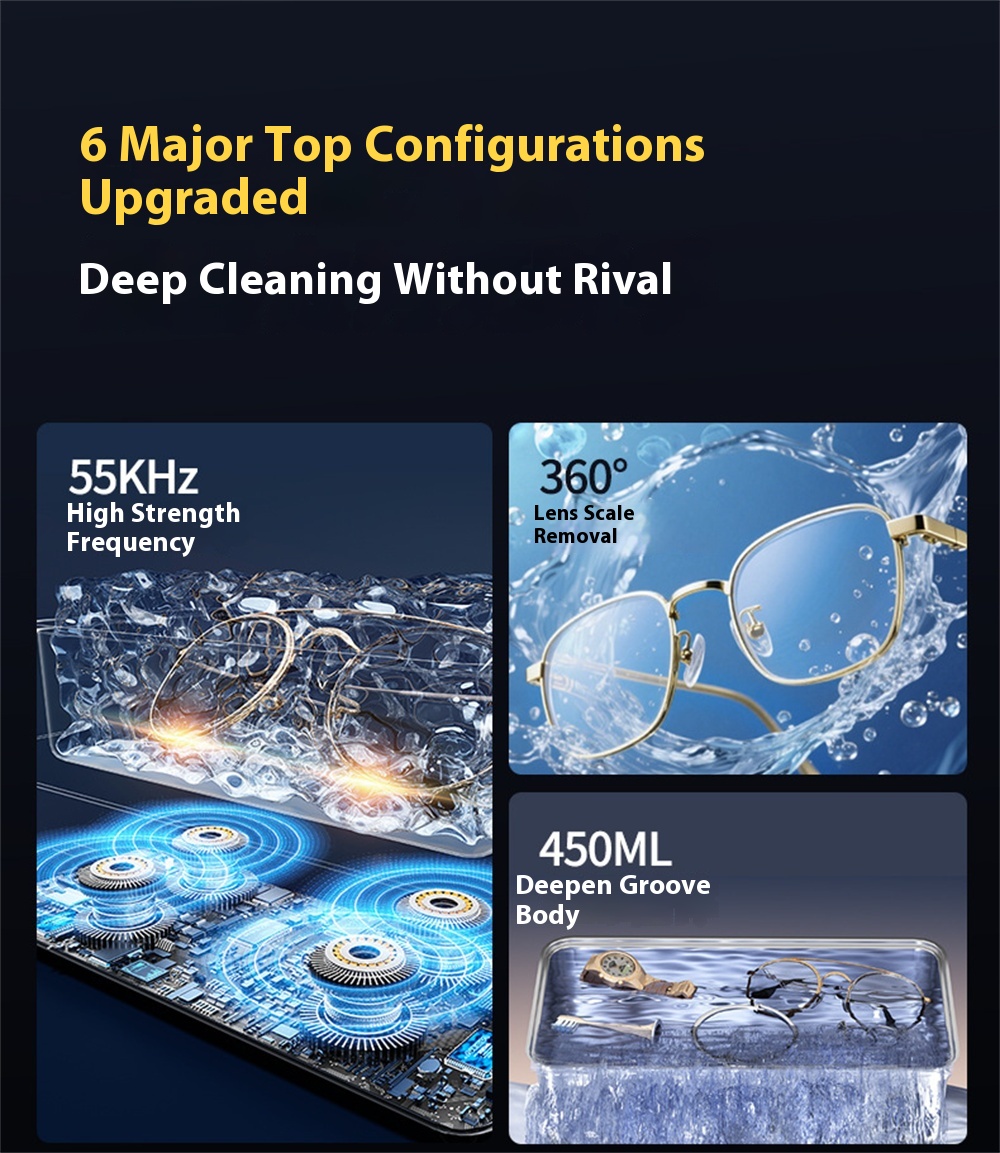 1. Multifunctional CleaningPerfect for jewelry, watches, glasses, sunglasses, toothbrushes, pacifiers, makeup brushes, pens, contact lenses, and more.2. Deep Ultrasonic CleaningHigh-frequency 60-65kHz vibrations create a cavitation effect that quickly removes stains, dirt, and grime from hard-to-reach crevices.3. Easy One-Key OperationAdd water, press one button, and enjoy 360° purification and efficient stain removal without hassle.4. Safe & Reliable DesignMade of ABS and 304 stainless steel for long-lasting use, resistant to wear and safe for daily household cleaning.5. Convenient 450ml CapacityLarge enough for multiple small items at once, saving time while keeping items sparkling clean.