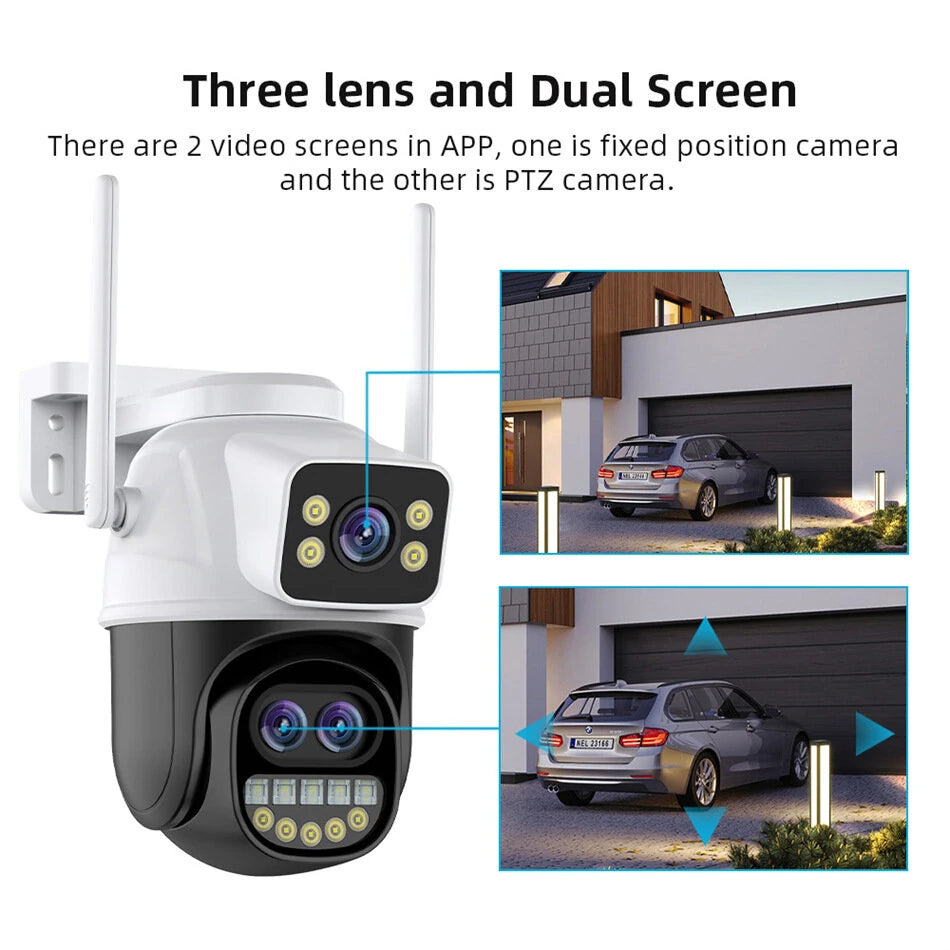 1. Triple-lens technology enables wide-angle and focused surveillance views simultaneously.
