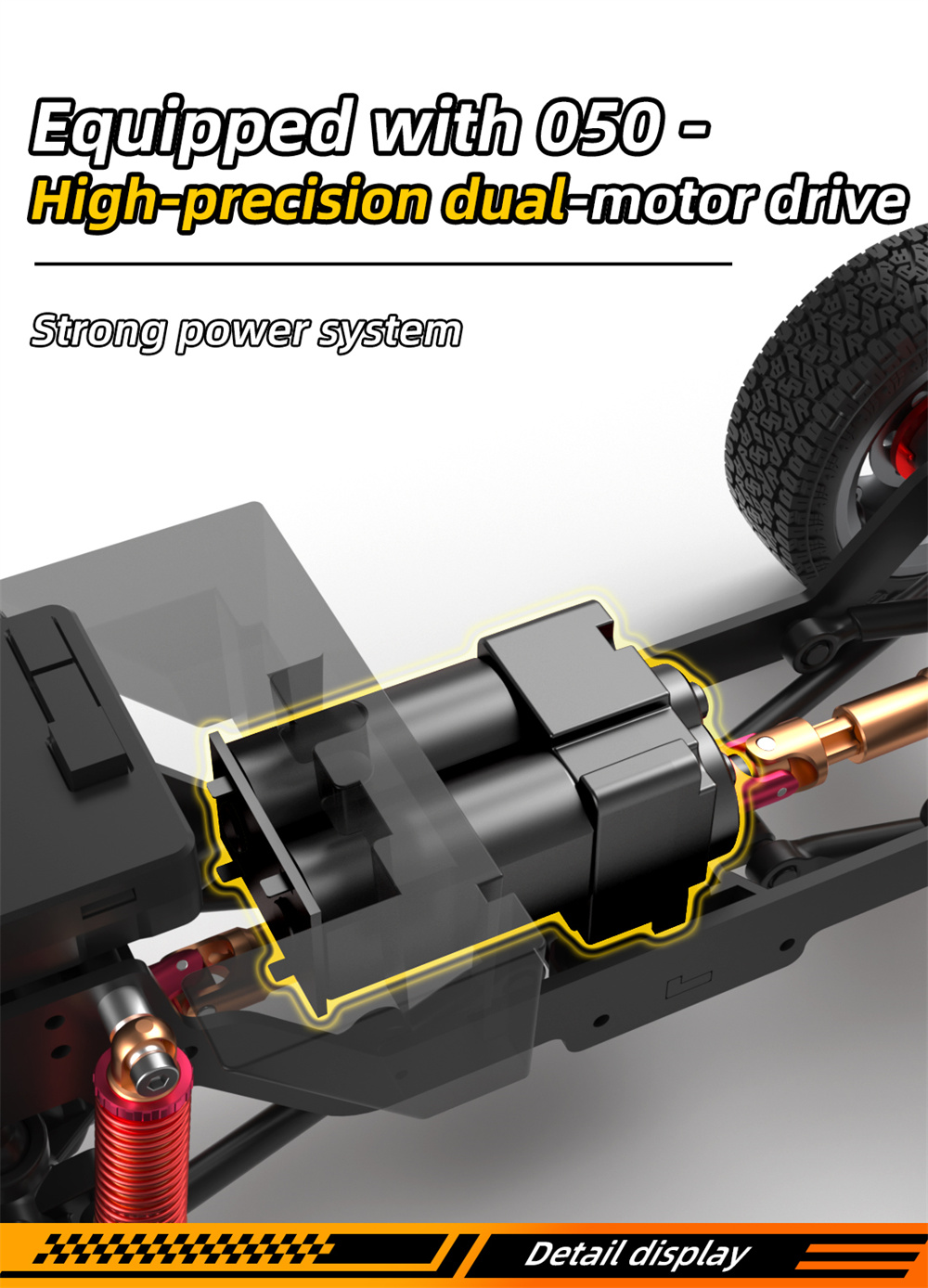 1. Driven by dual 050-grade brushed motors (all-alloy gear transmission).