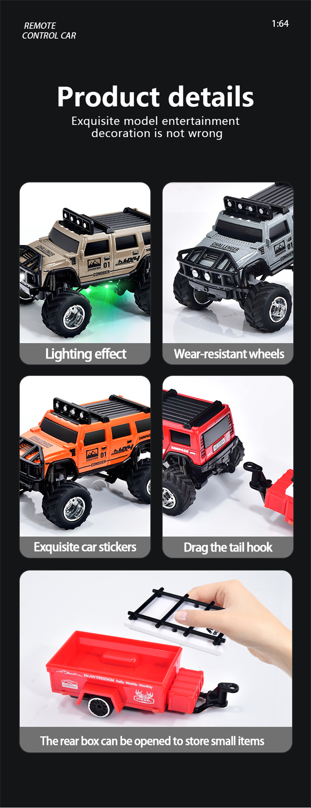 Car Size:9*6*6cm With Trailer Car Size:19*6*6cm Box Size:10*7.5*7cm/12.5*6.1*10.7cm |