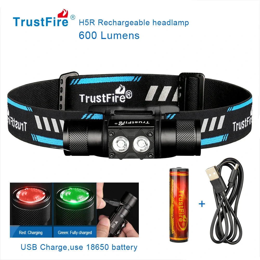 Rightness contrast, real lumens are not falseThe brightness of H5R headlight is 600 lumens, which is equivalent to 1200 lumens of other brandsTrustFire H5R headlamp with a max brightness of 600 lumensOther brand headlamp with a max brightness of 1200 lumens