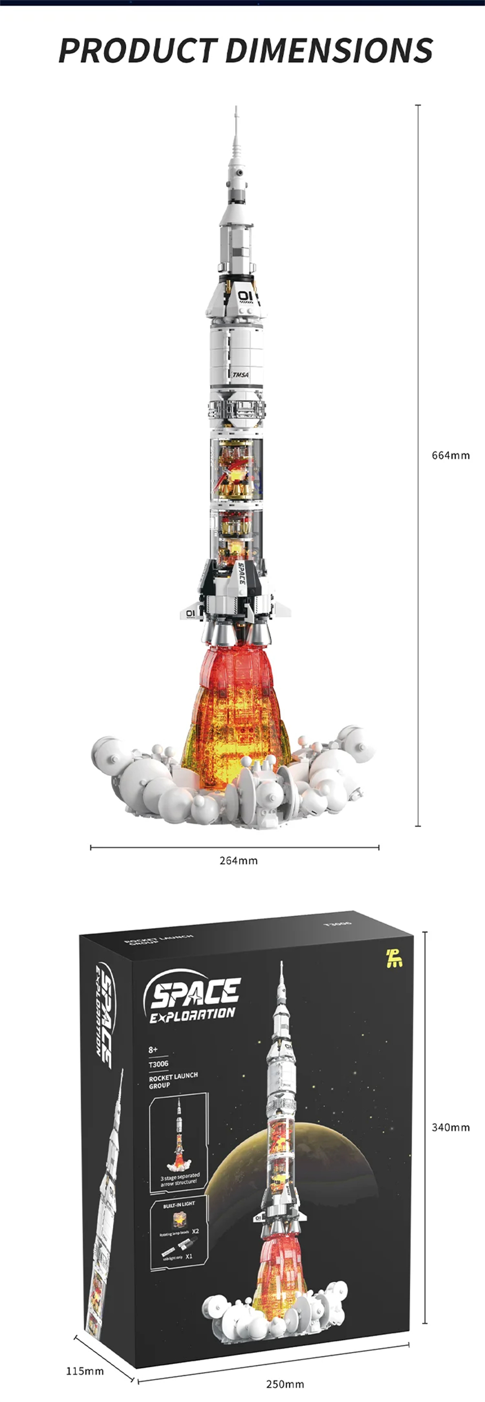 Product Model: T3006 Product Name: Space Rocket Launch Kit Material: High-quality ABS Dimensions: 264mm x 227mm x 644mm Package Dimensions: 250mm x 115mm x 340mm |