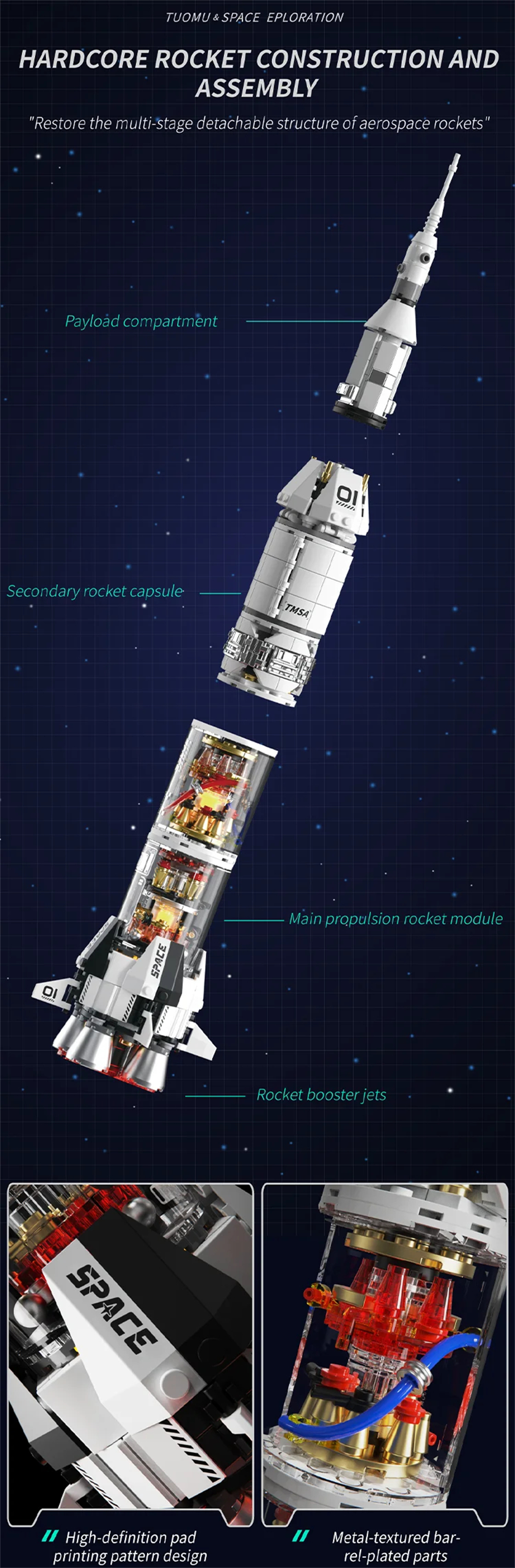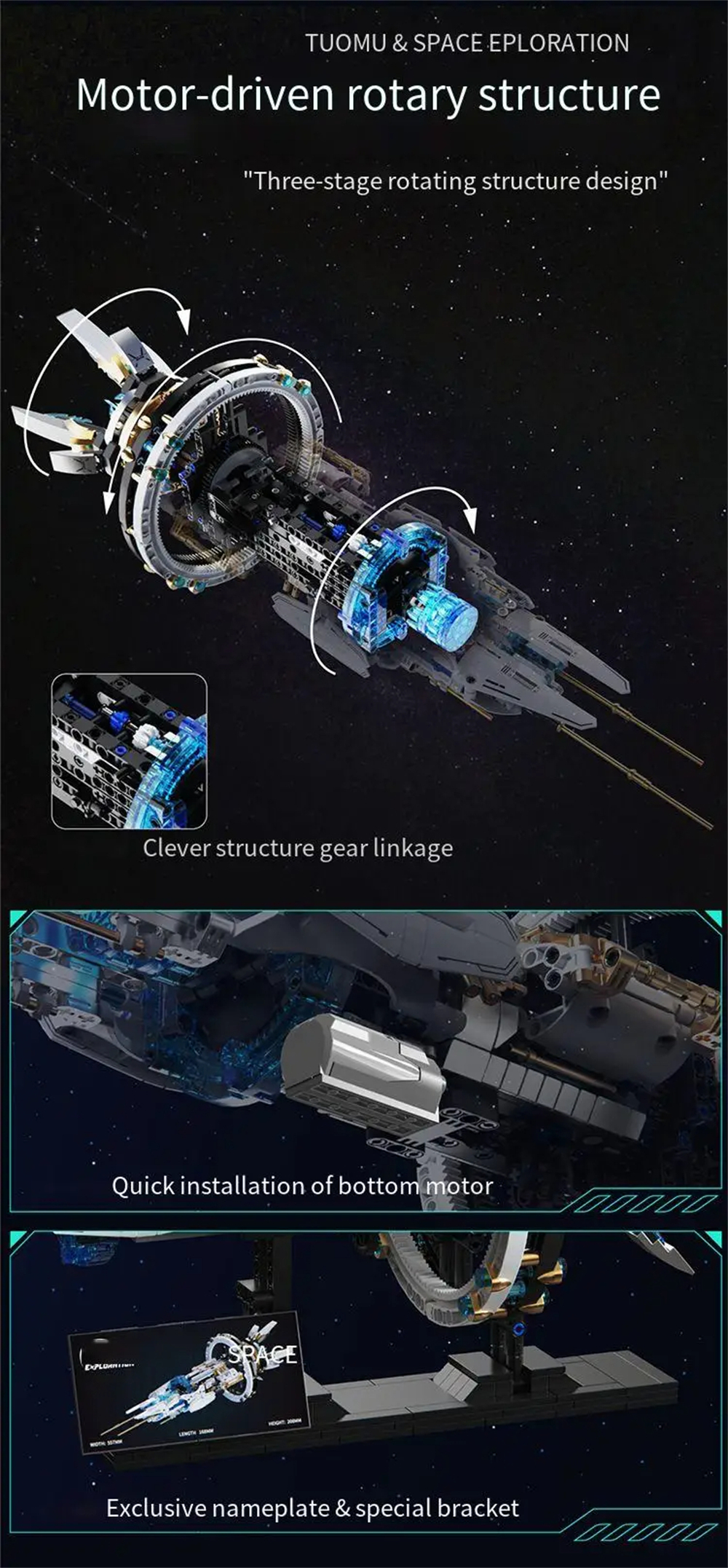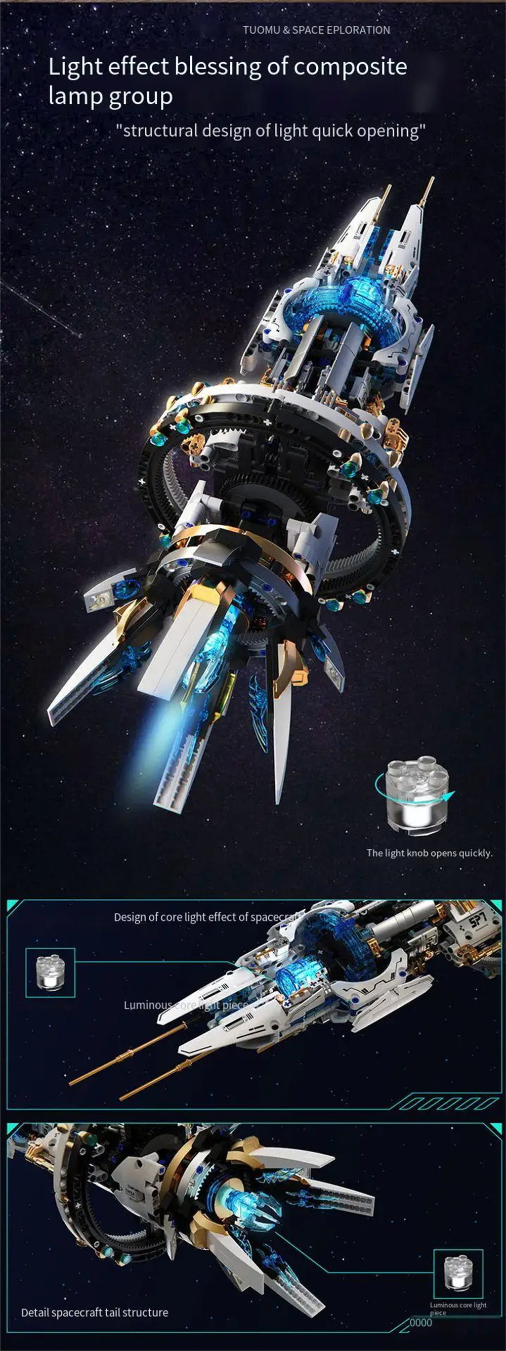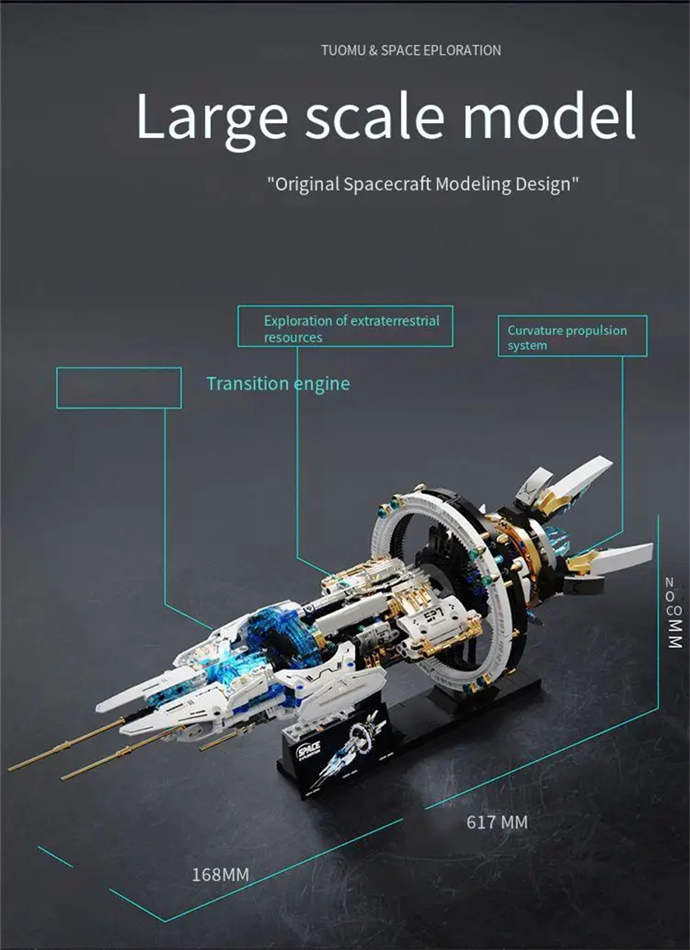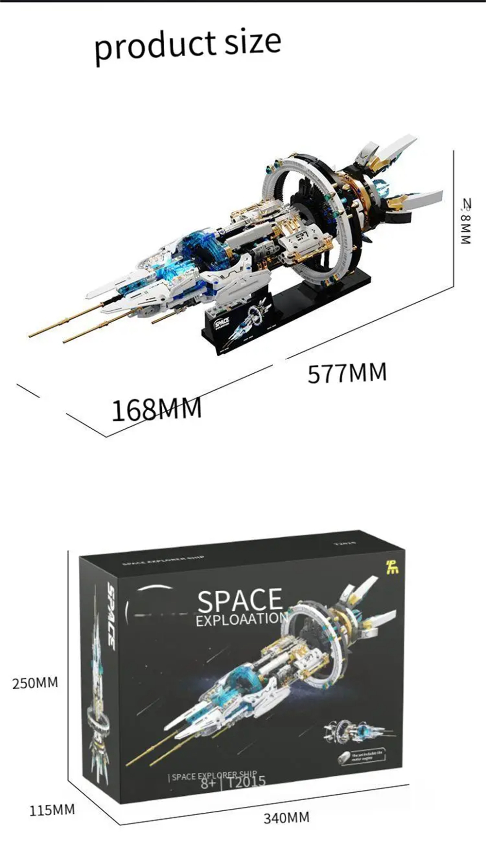 Product Model: T2015 Product Name: Space Explorer Spacecraft Material: High-quality ABS Dimensions: 577mm × 168mm × 208mm Package Dimensions: 340mm × 115mm × 250mm |