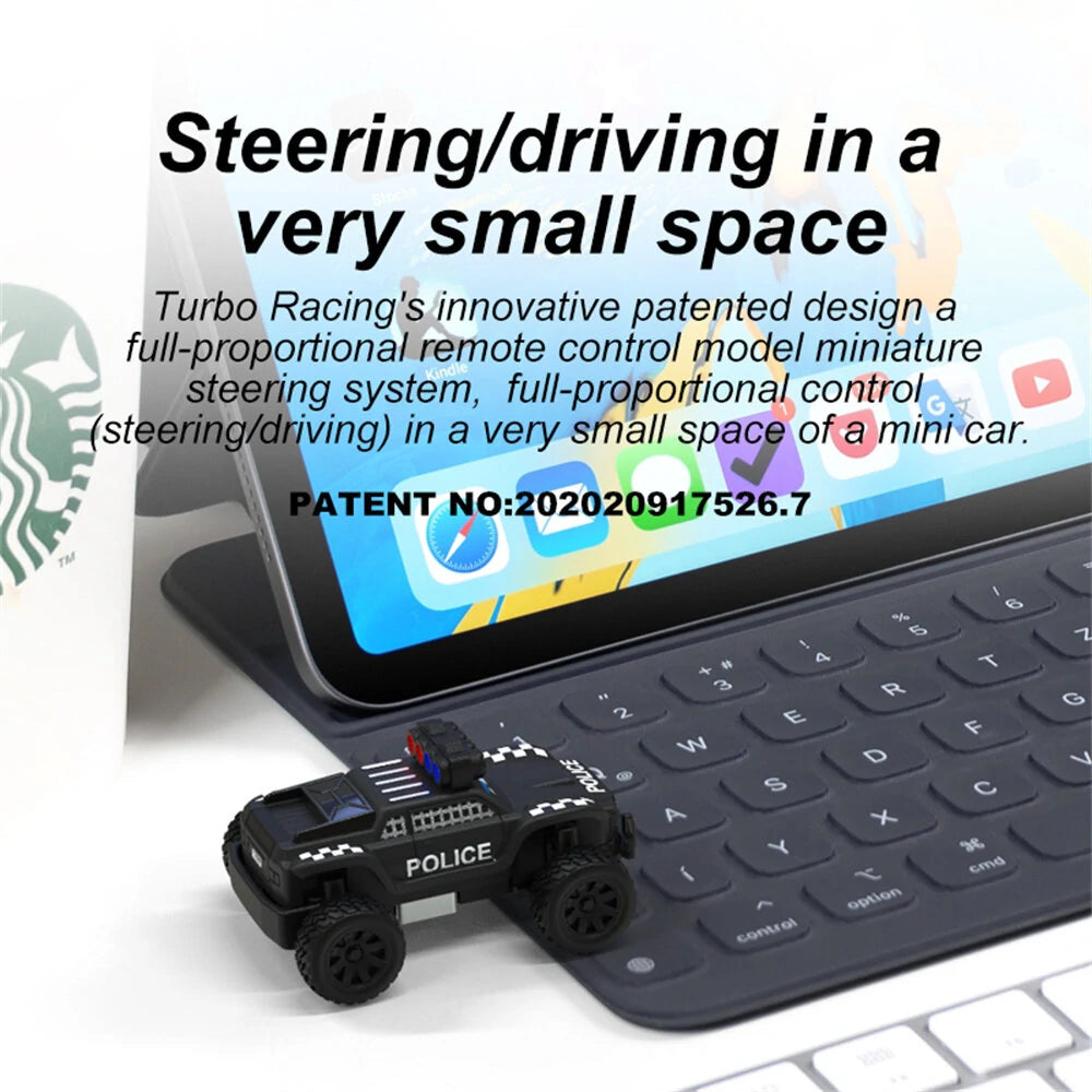 Type-C charging port,battery capacity 75mAhHandheld mini remote control car with the proportion of 1:76Integrate all functional units in the limit spaceSteering/driving in a very small spaceFHS/FHSS 2.4G remote control systemSeveral playing methods for a car,professional rc competition,helps improve concentration,parent-child,party entertainment,table games and so on